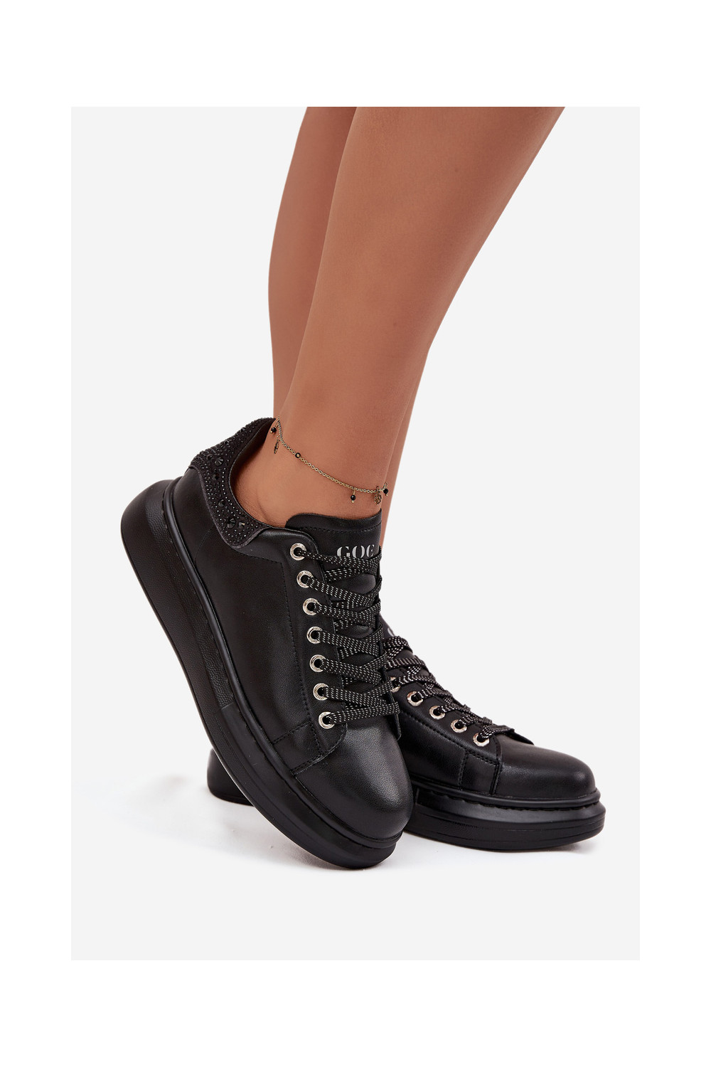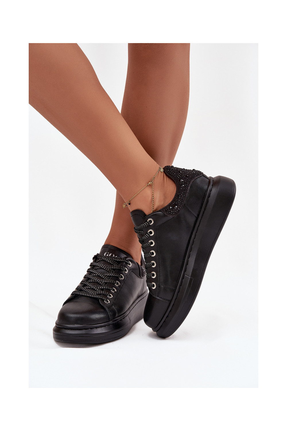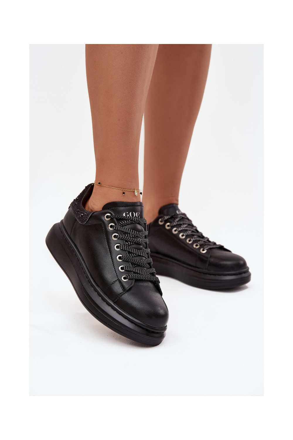 Moteriški sportiniai bateliai iš natūralios odos GOE OO2N4004 juodos spalvos