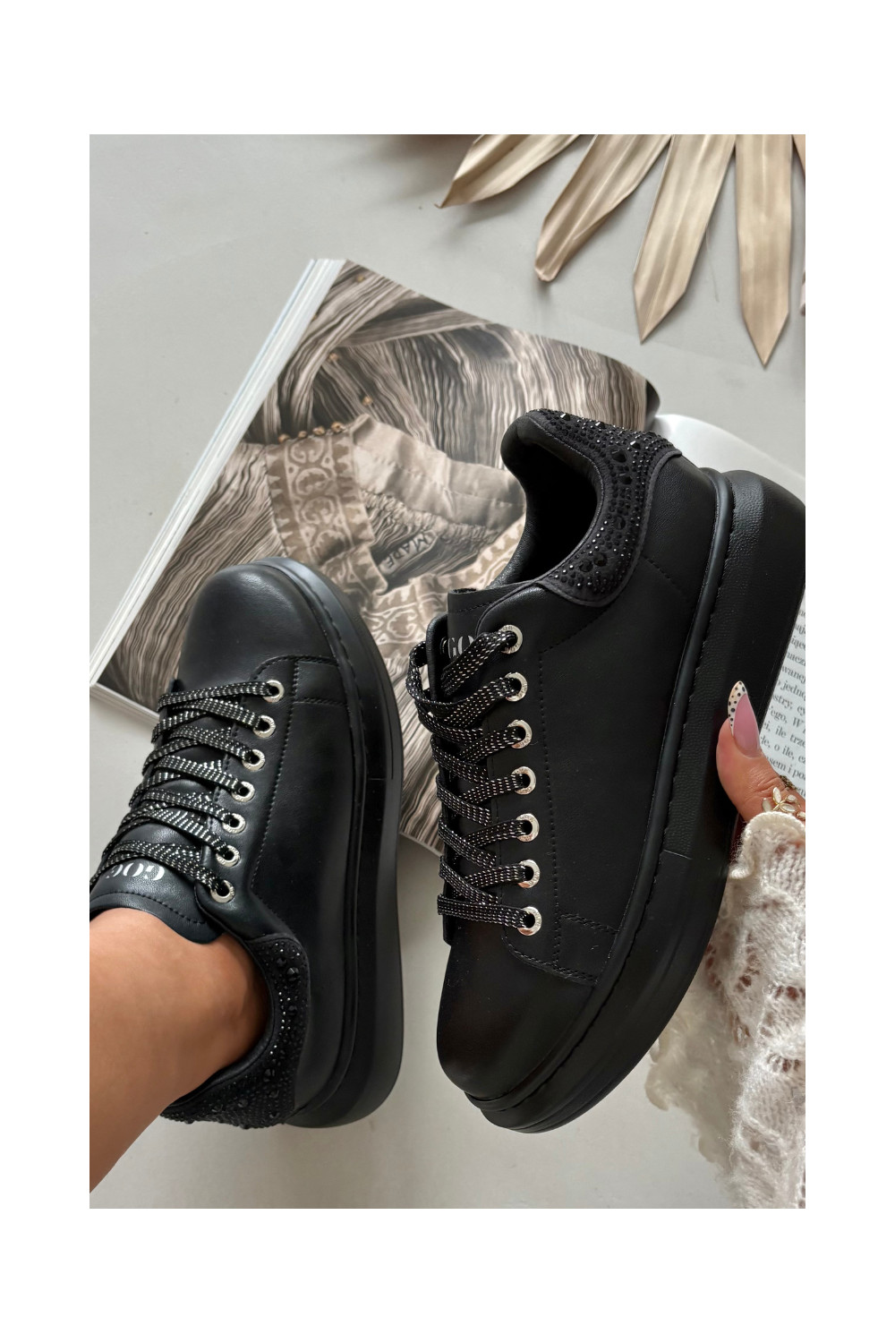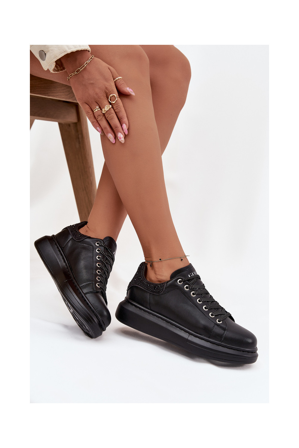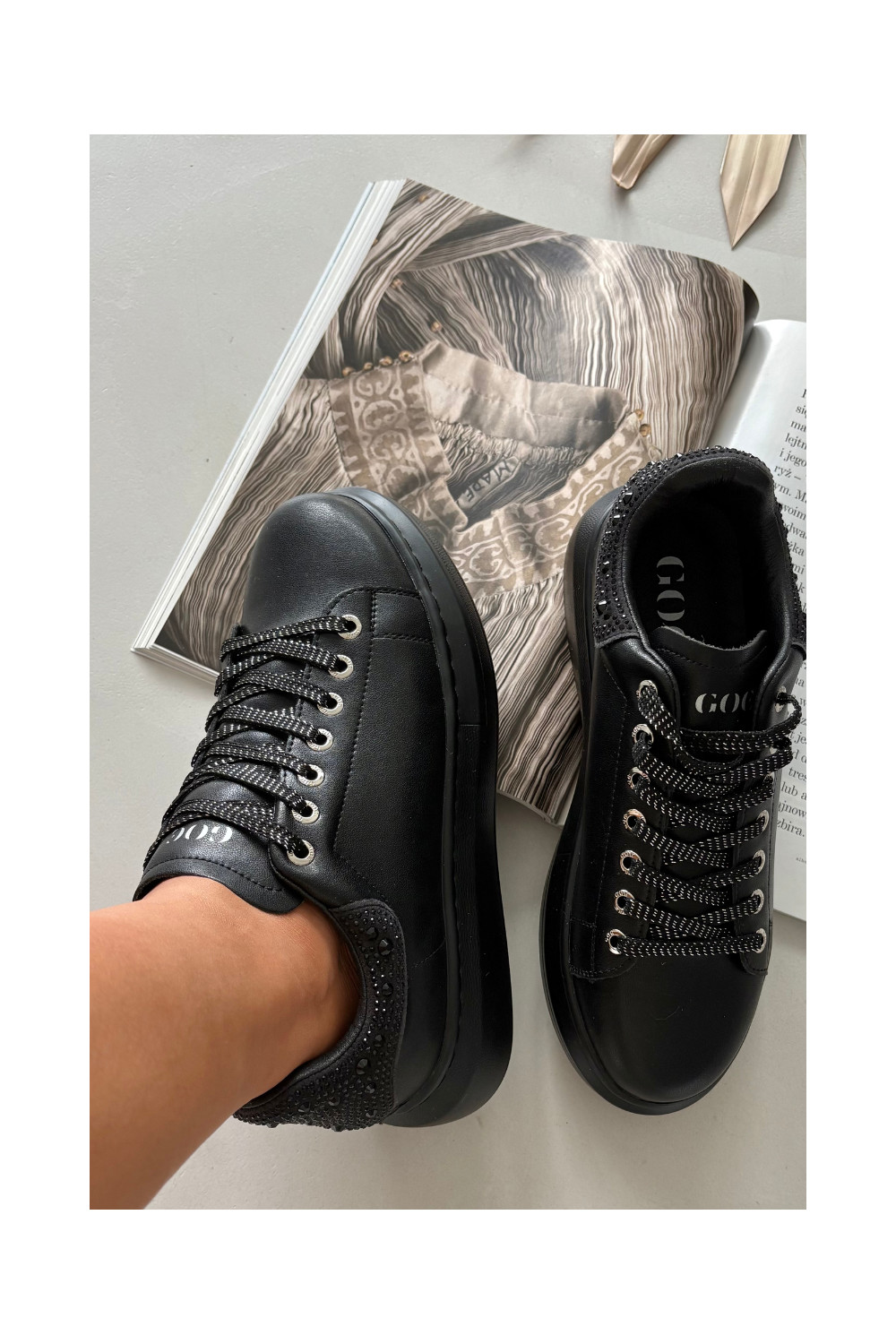 Moteriški sportiniai bateliai iš natūralios odos GOE OO2N4004 juodos spalvos