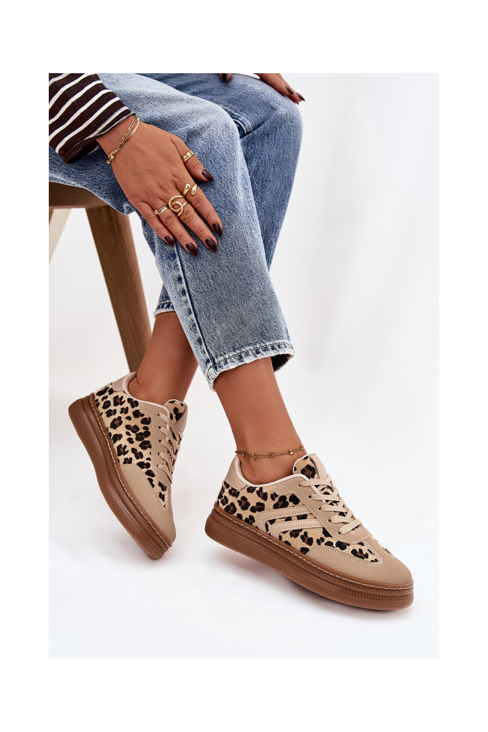 Sneakers modelio batai Moteriškas su platforma su leopardo kailio raštais smėlio spalvos Denissa