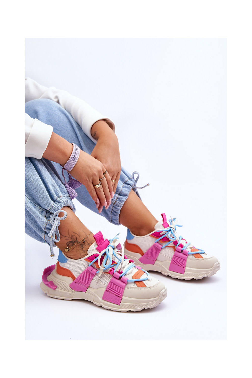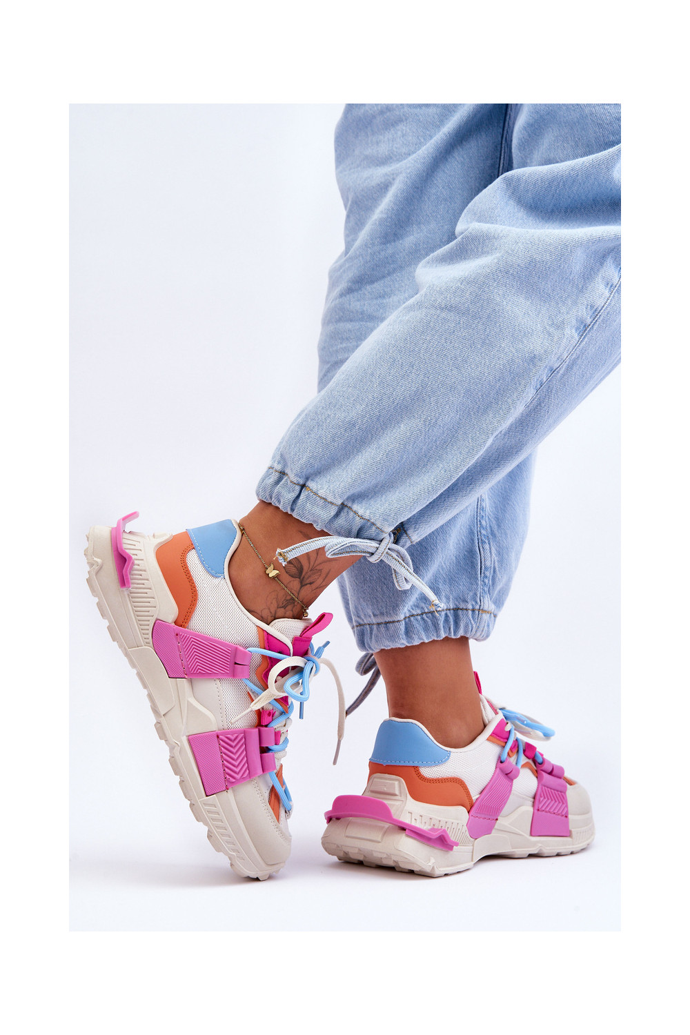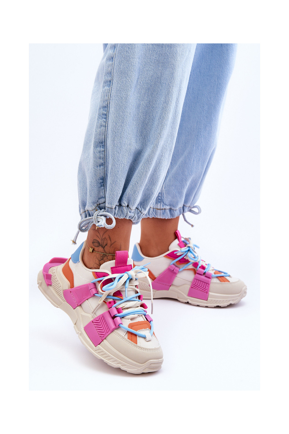 Moteriški sportiniai bateliai su raišteliais smėlio-rožinės spalvos Chillout!