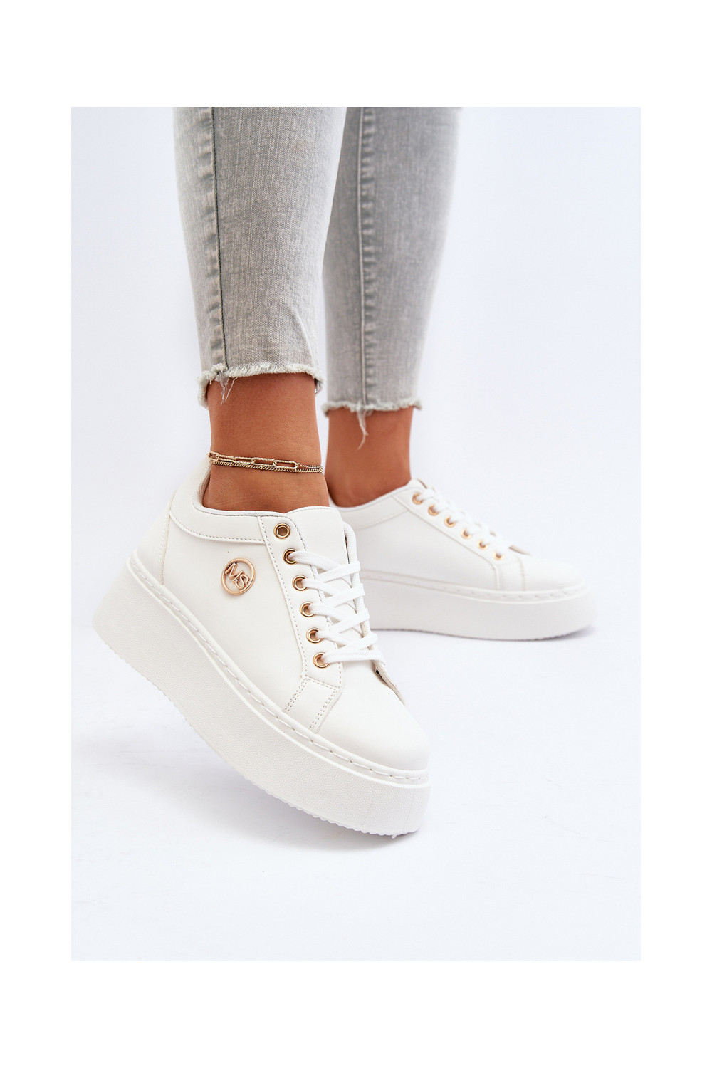 Žemas Sneakers modelio batai Moteriškas su platforma baltos spalvos Telirra