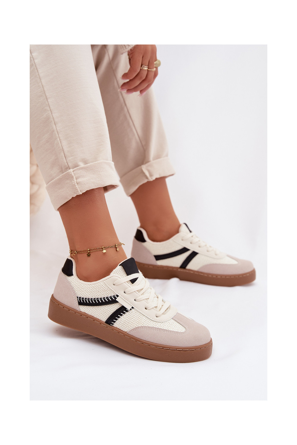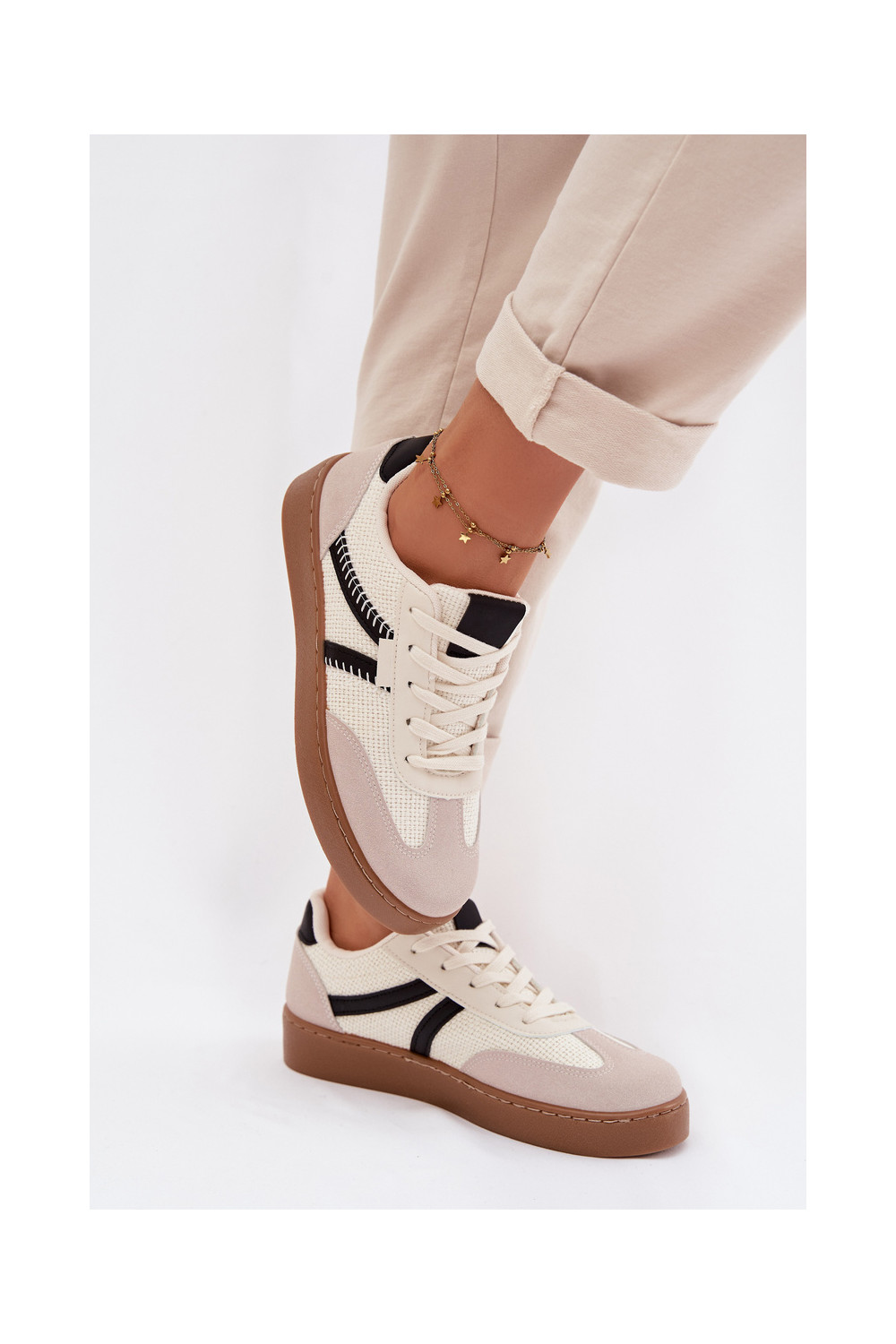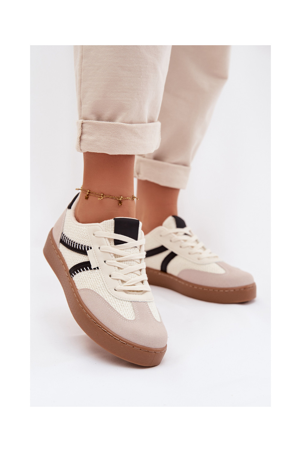 Žemas Sneakers modelio batai Moteriškas Baltos-juodos spalvos Denelisse