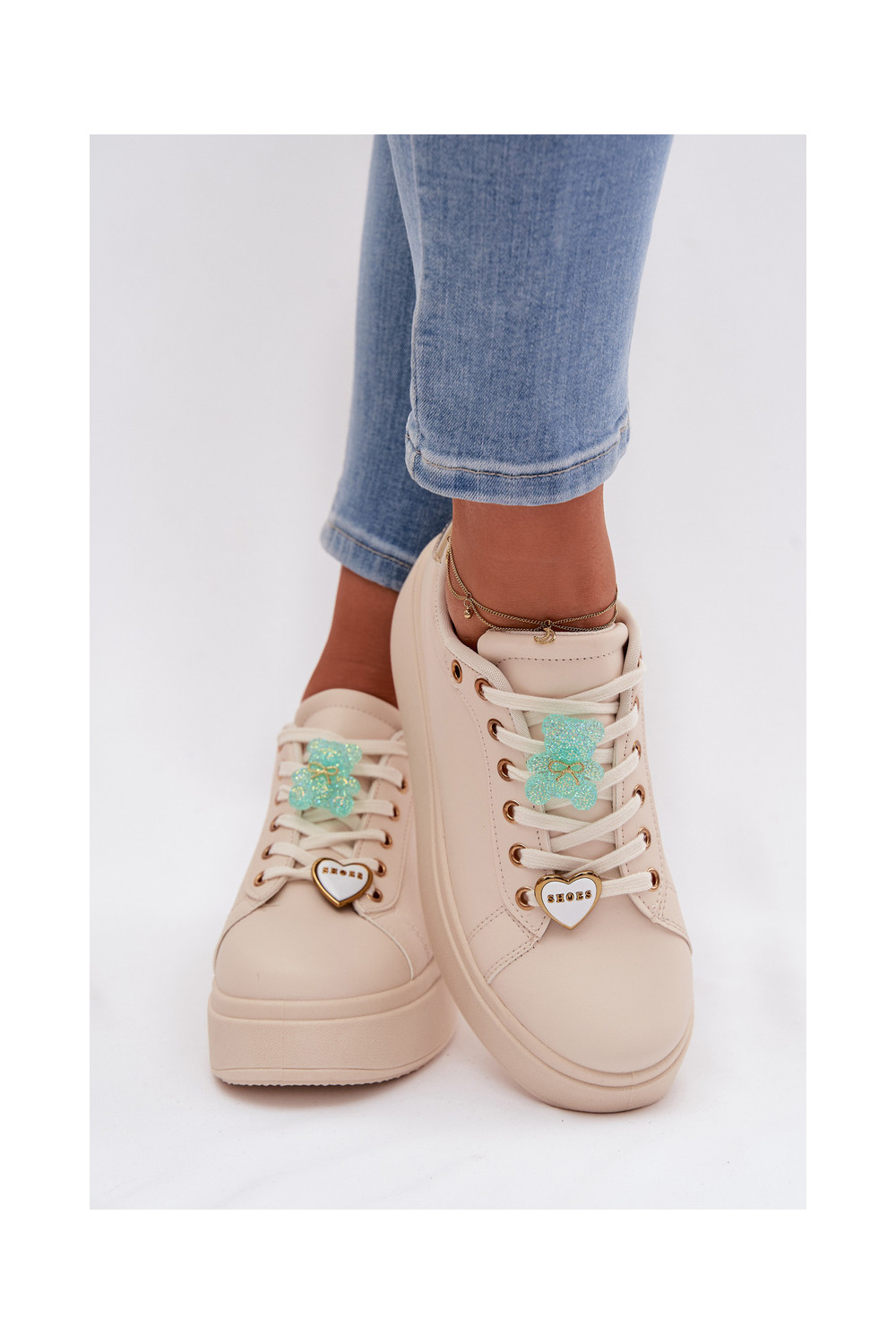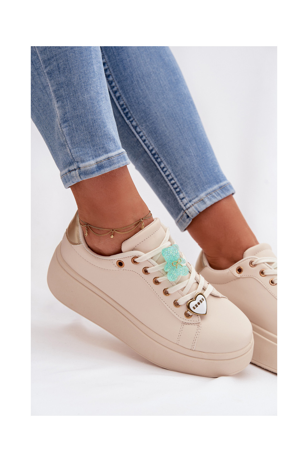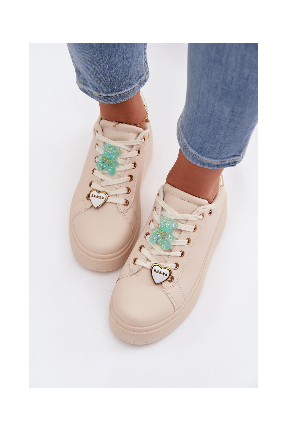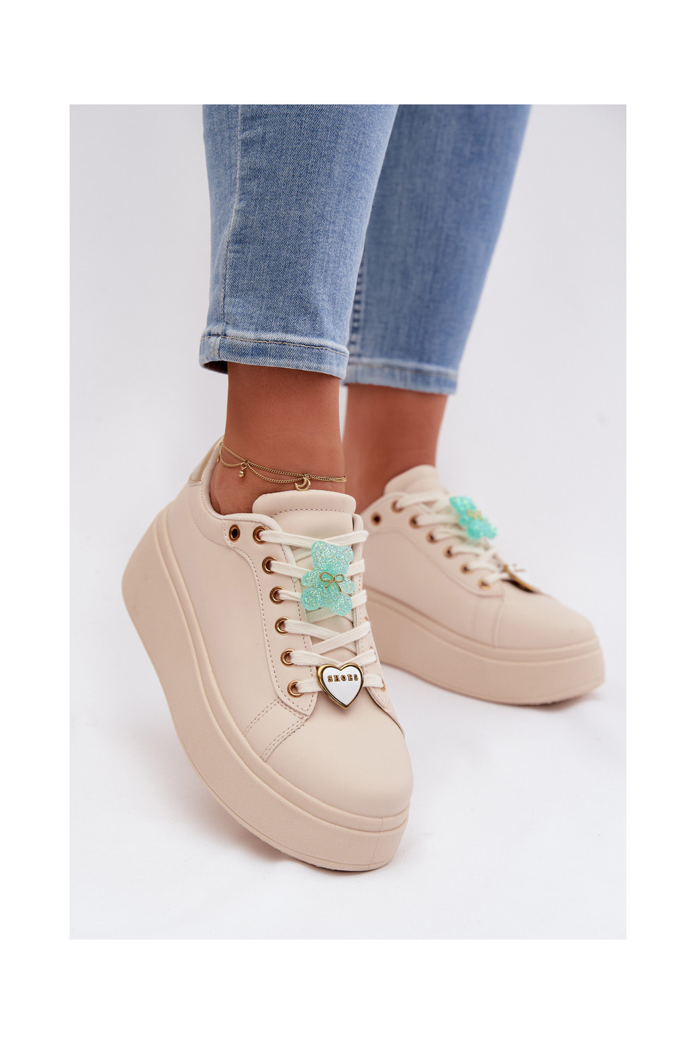 modelio batai su platforma Z Przypinkami Meškiukai su širdelėmis smėlio spalvos Selorissa