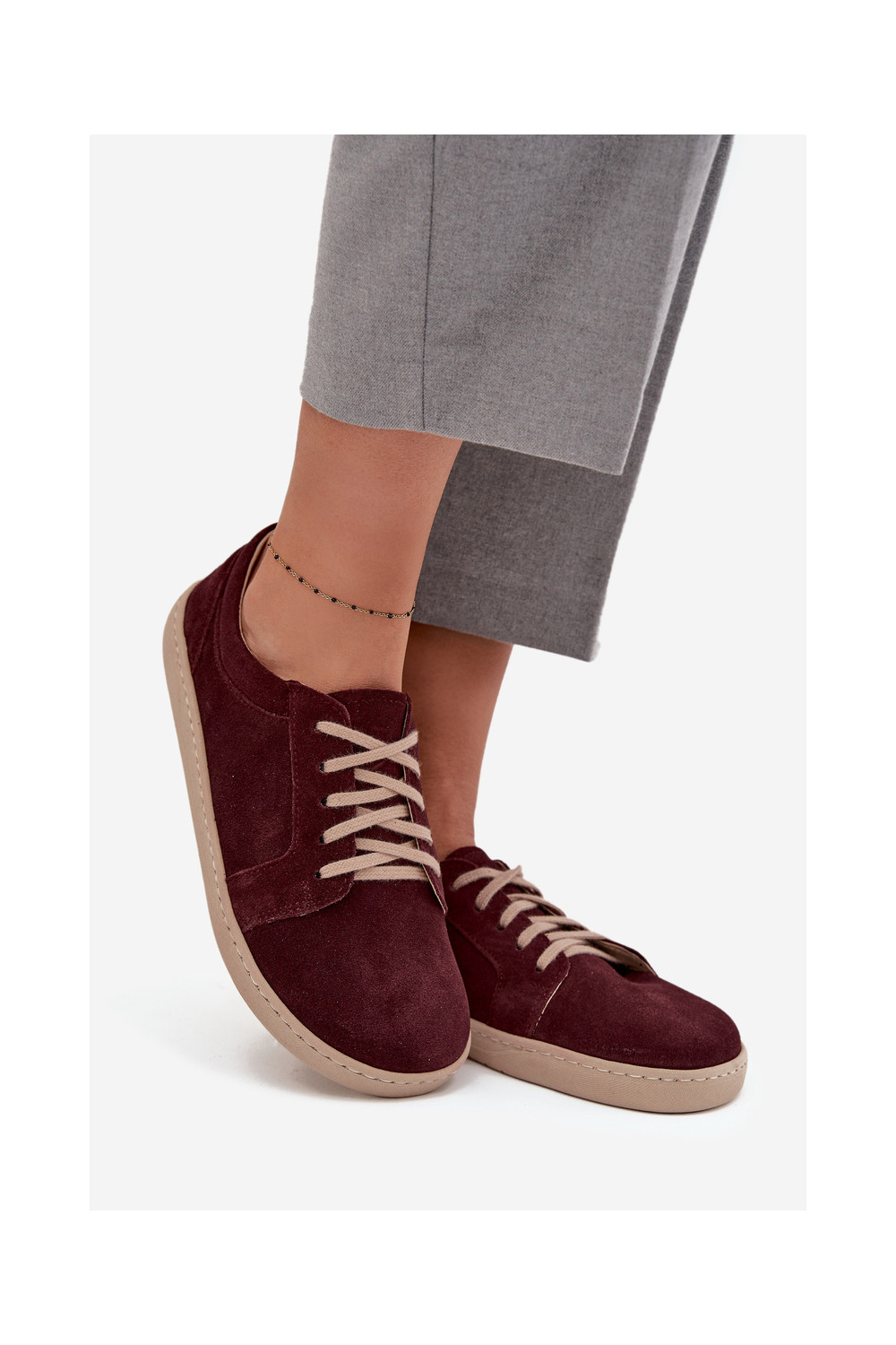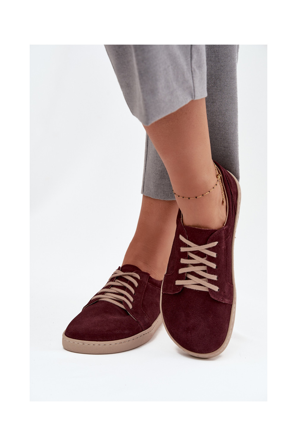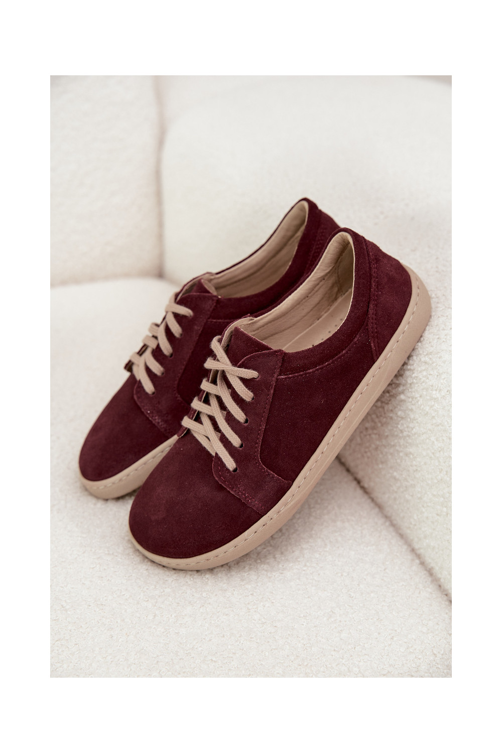 Laisvalaikio natūralaus zomšo batai "Barefoot" tipo Zazoo 314 bordo spalvos