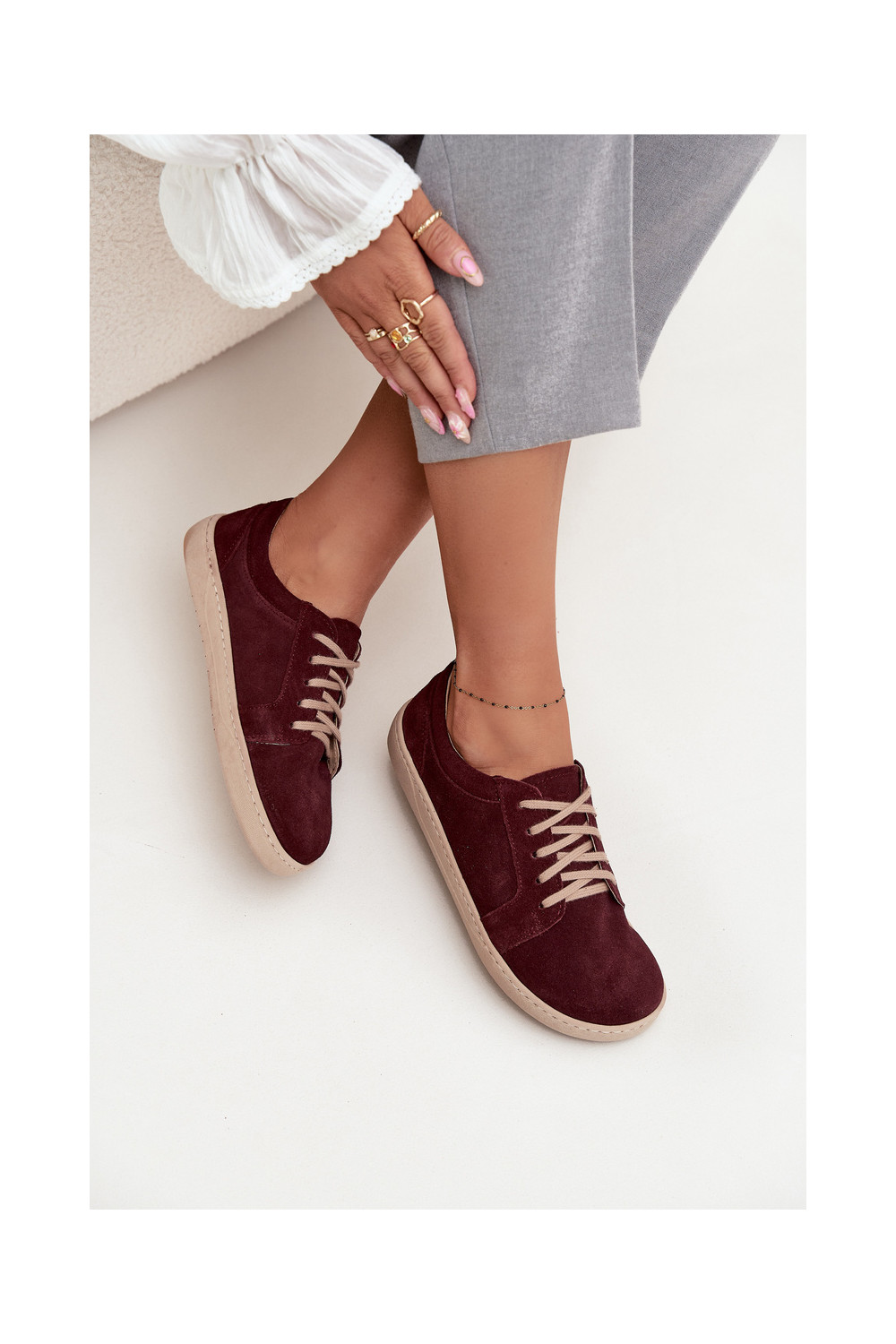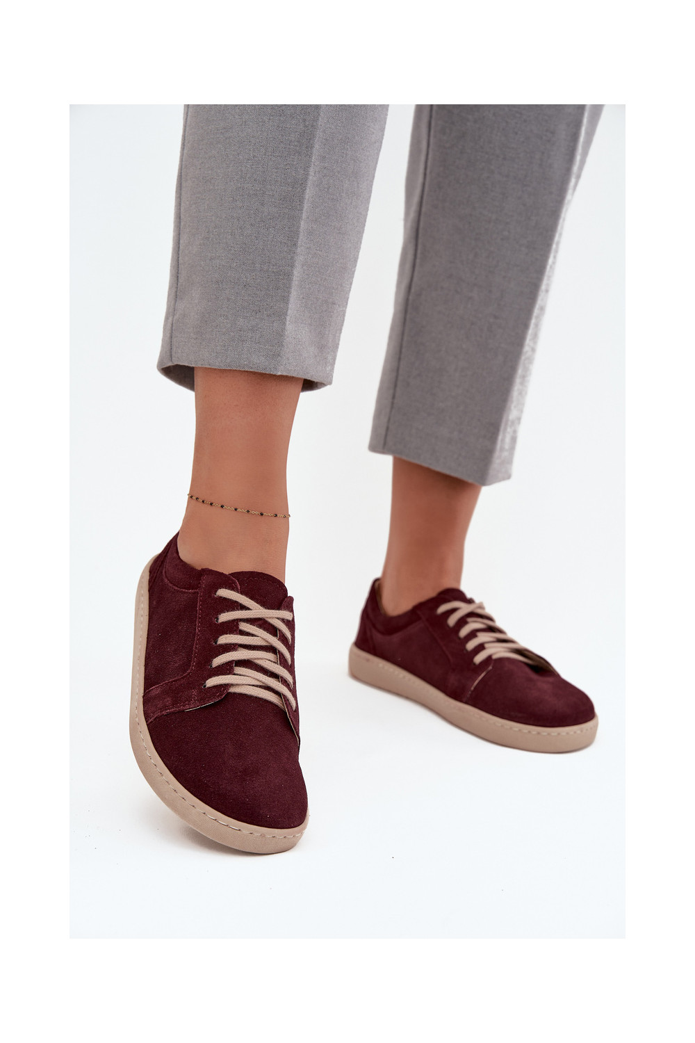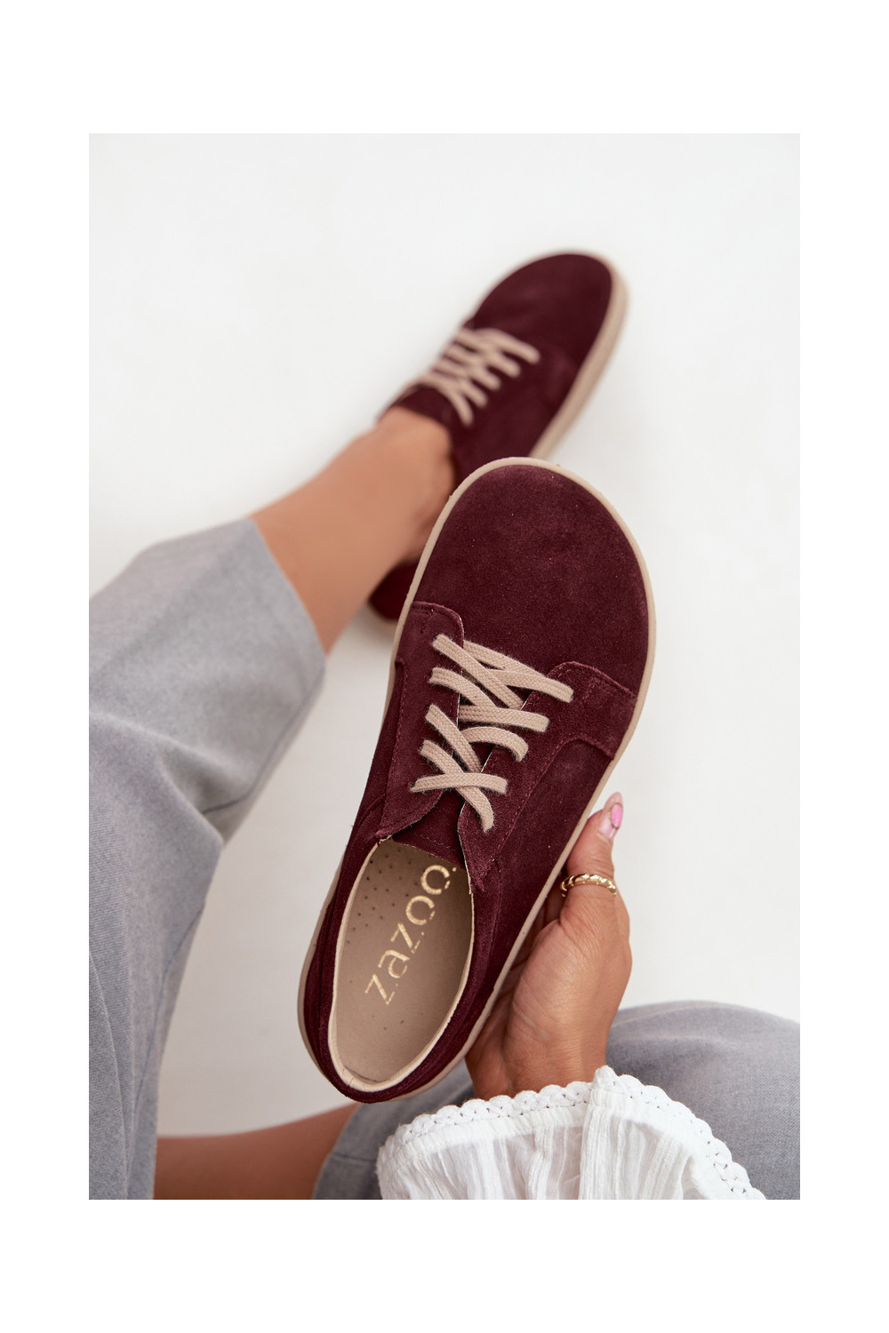 Laisvalaikio natūralaus zomšo batai "Barefoot" tipo Zazoo 314 bordo spalvos