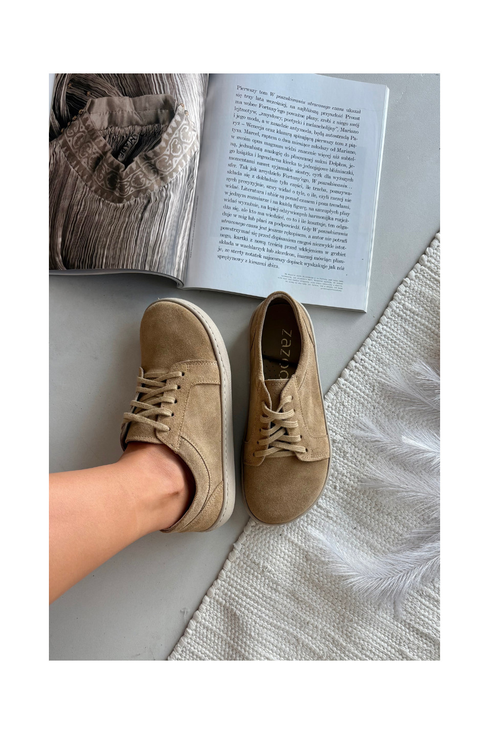 Laisvalaikio natūralaus zomšo batai "Barefoot" tipo Zazoo 314 smėlio spalvos