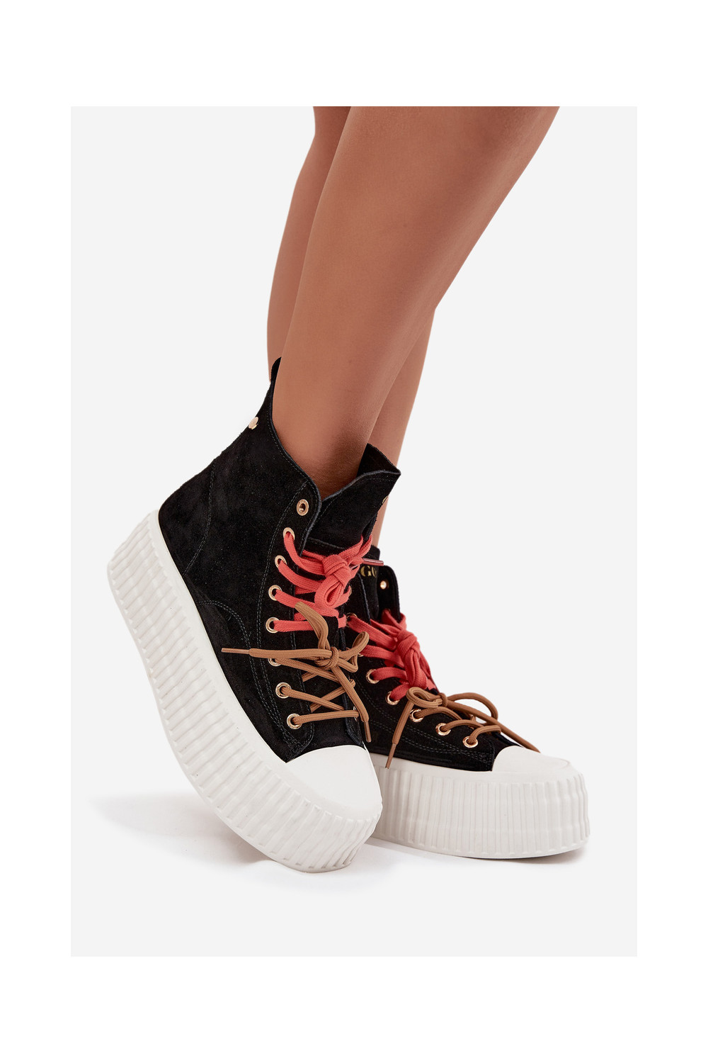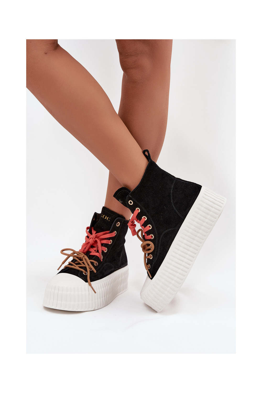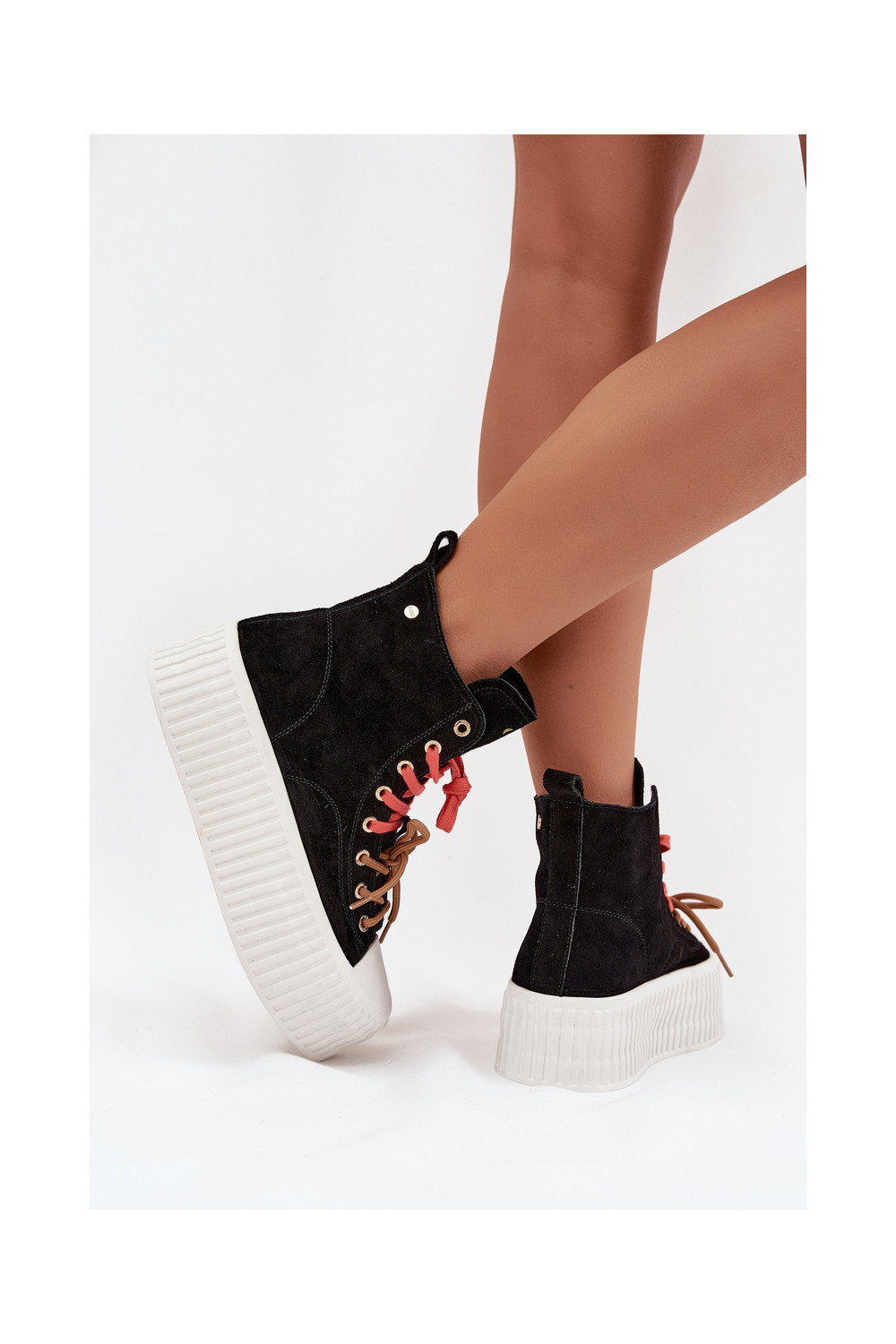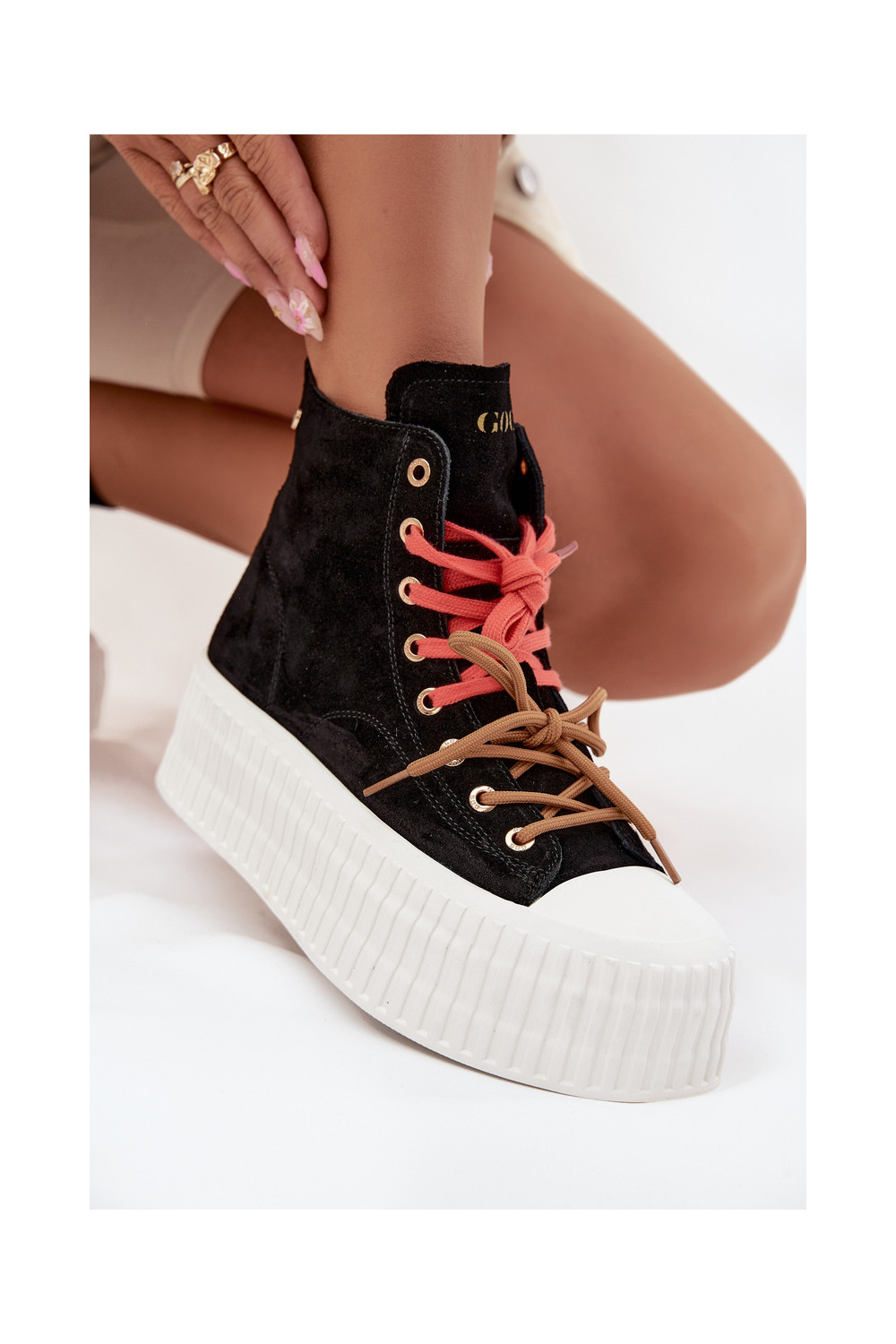 iš zomšos pašiltinti Laisvalaikio bateliai su platforma GOE SS2N4046 Juodos spalvos