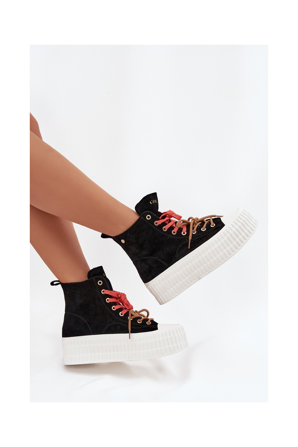 Zomšiniai šilti laisvalaikio bateliai su platforma GOE SS2N4046 juodos spalvos