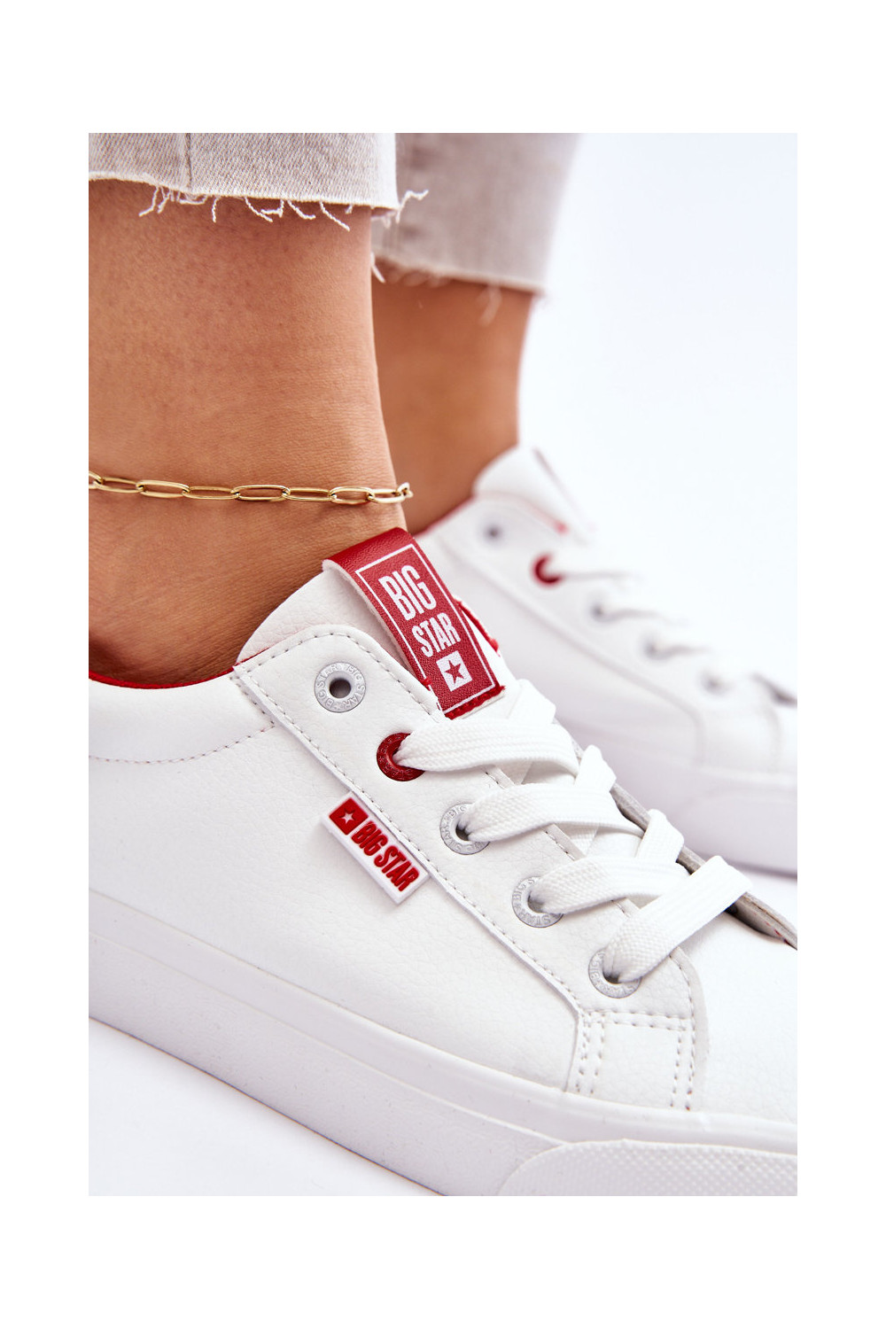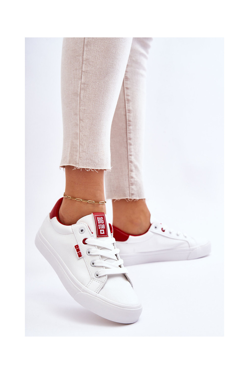 Įjungtatūralios odos sportbačiai Big Star EE274311 Baltos-raudonos spalvos