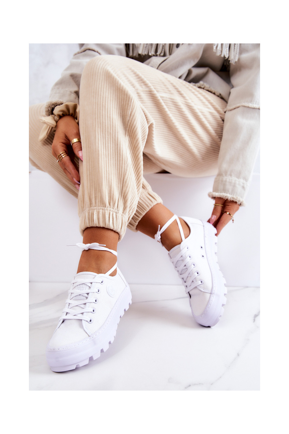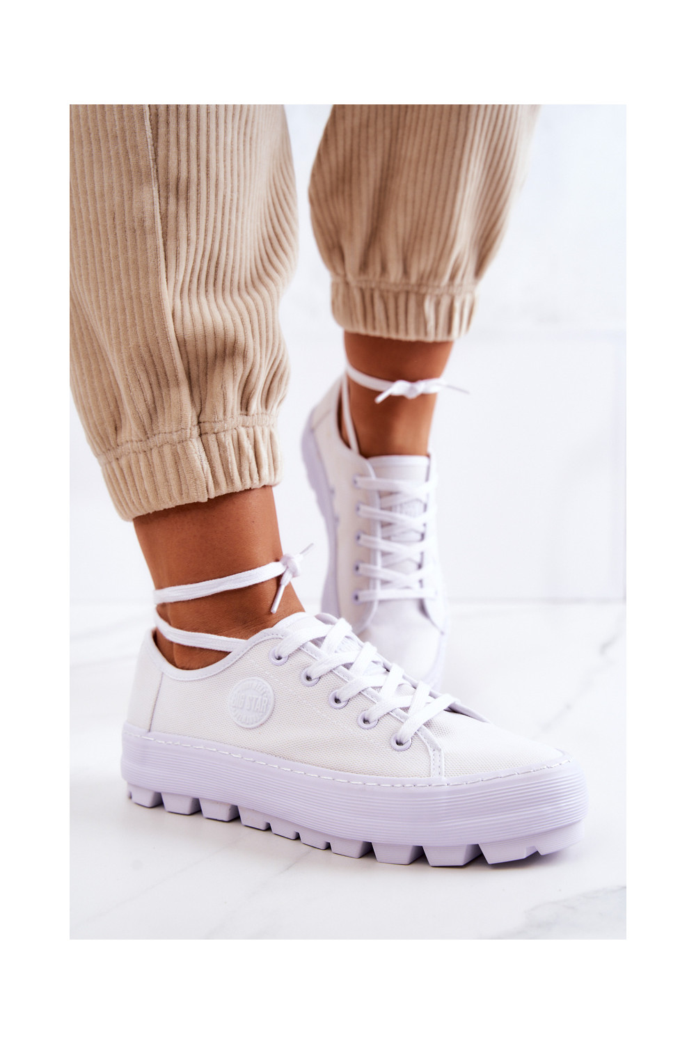 Moteriški batai su platforma BIG STAR JJ274488 baltos spalvos
