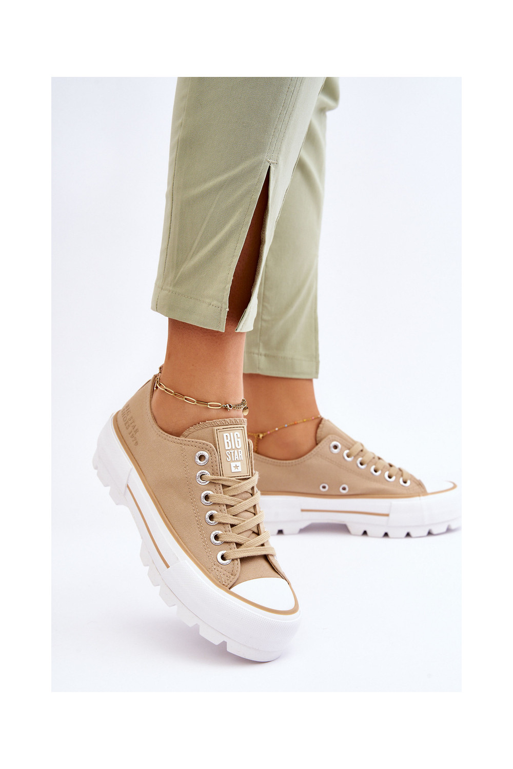 laisvalaikio batai su platforma Big Star LL274154 smėlio spalvos