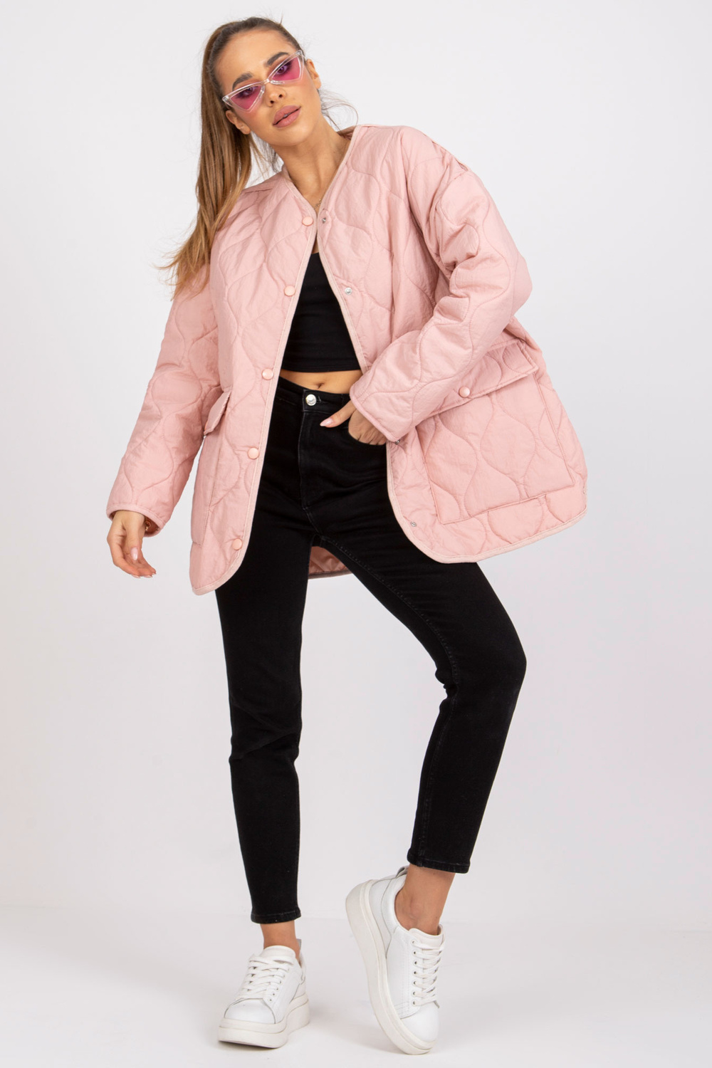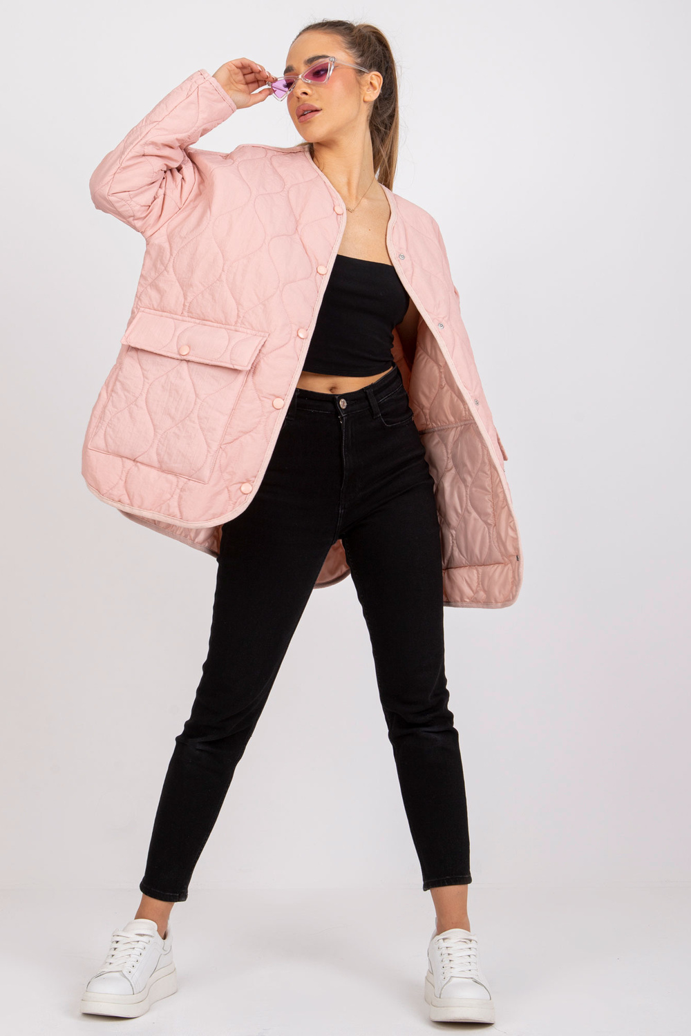Purvinas rožinės spalvos dygsniuotas švarkas be gobtuvo Callie RUE PARIS .