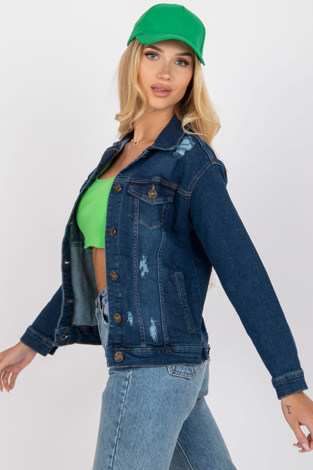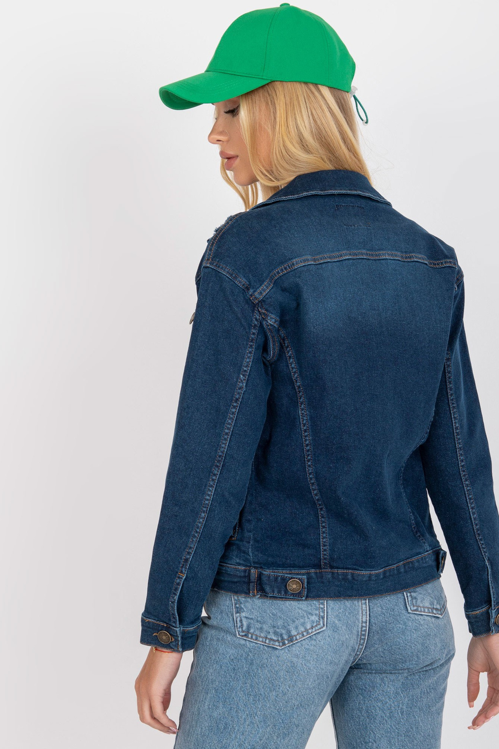 Tamsiai mėlynos spalvos moteriškas džinsinis švarkas su kišenėmis RUE PARIS .