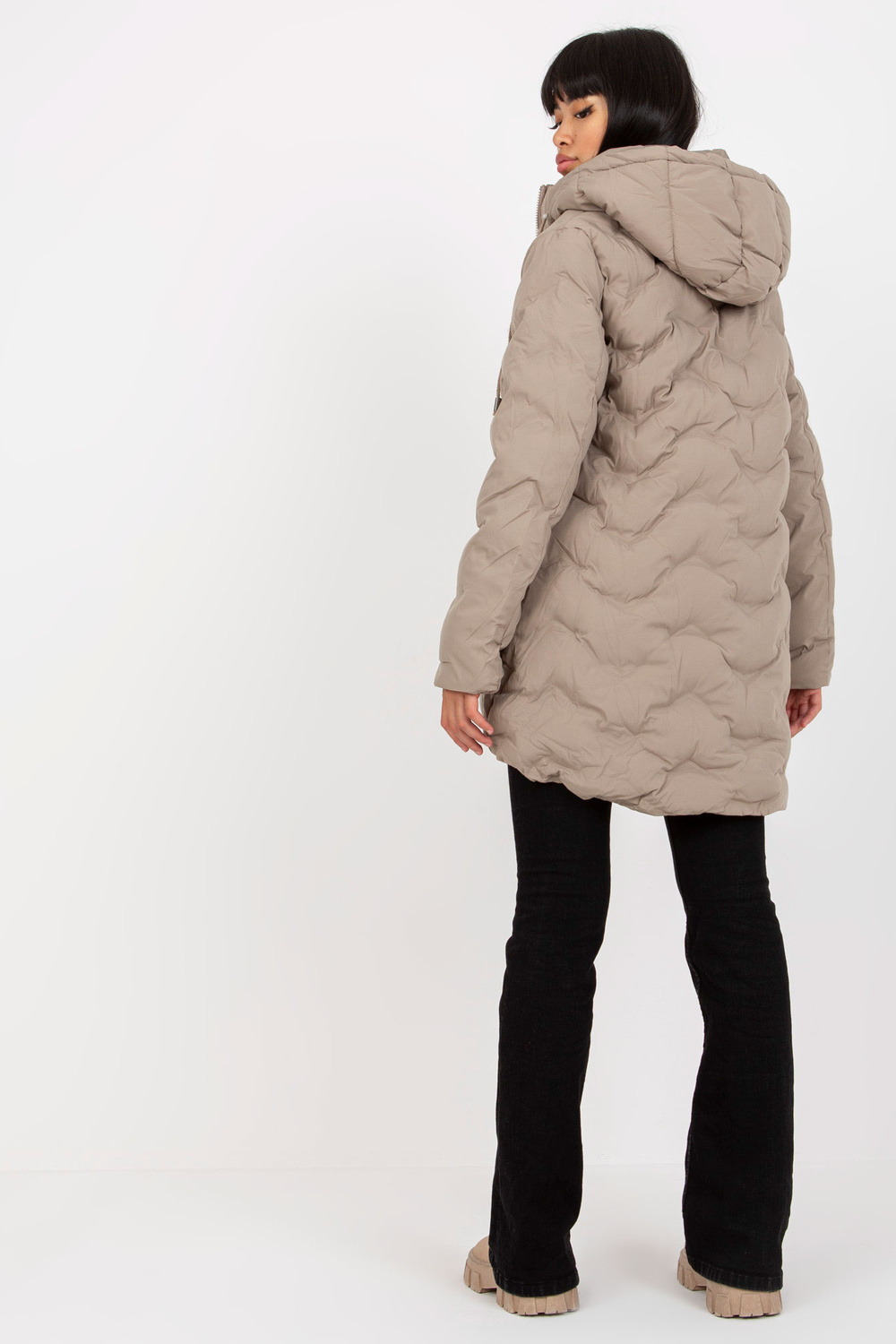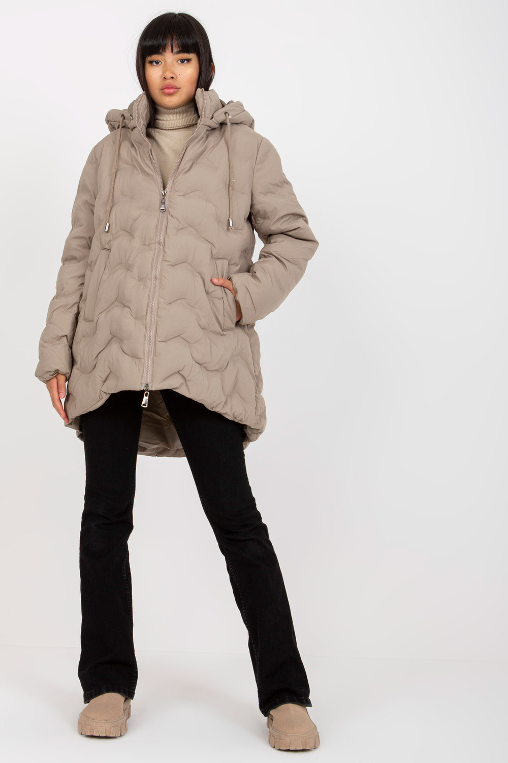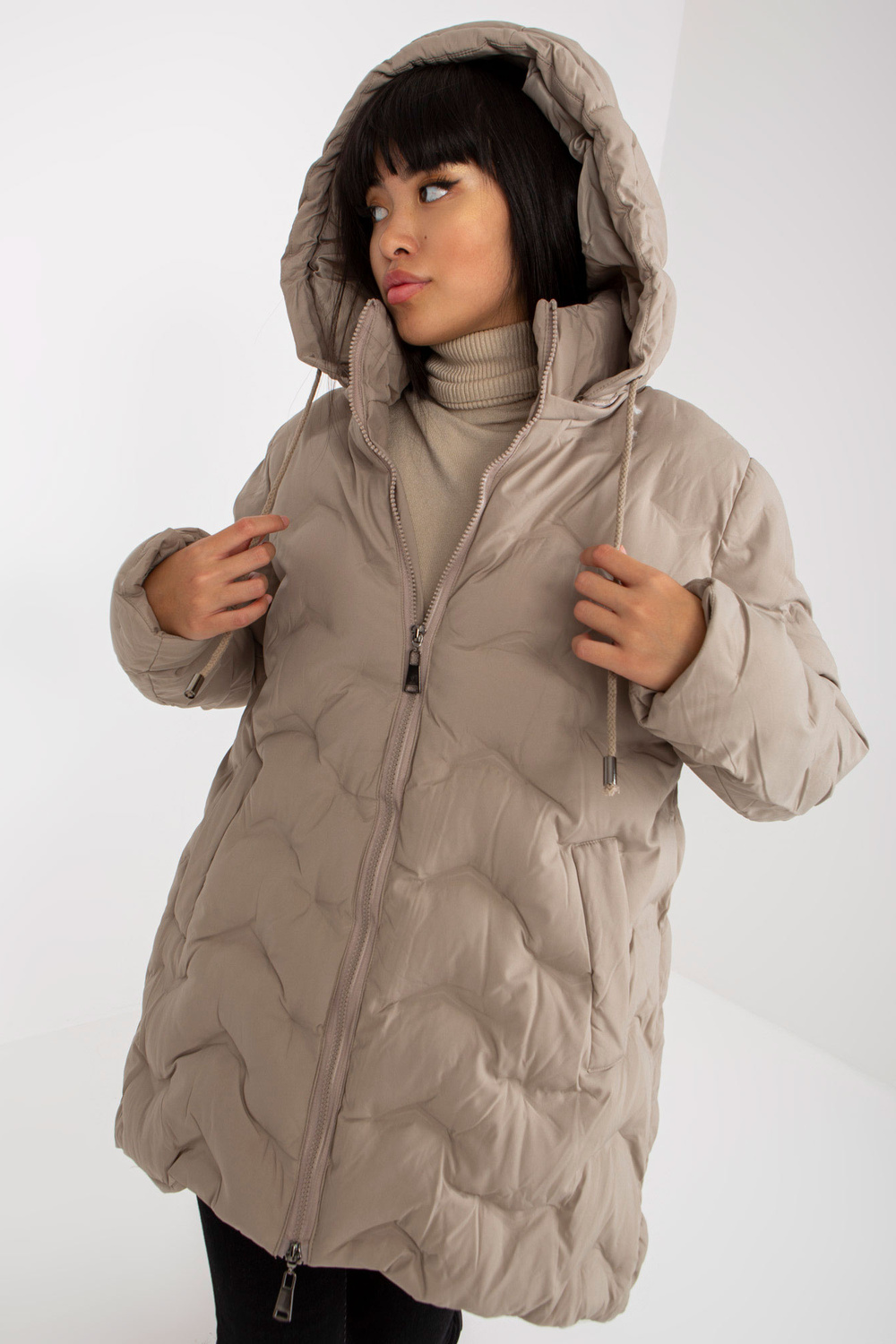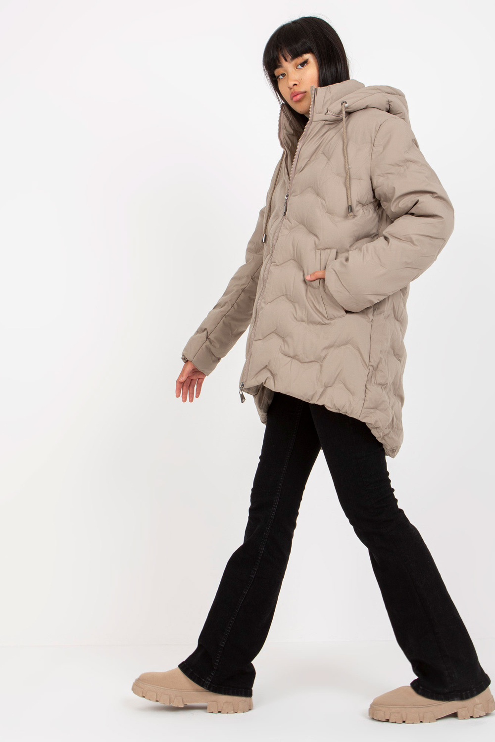 Beigewomen žieminė striukė su nuimamu gobtuvu .