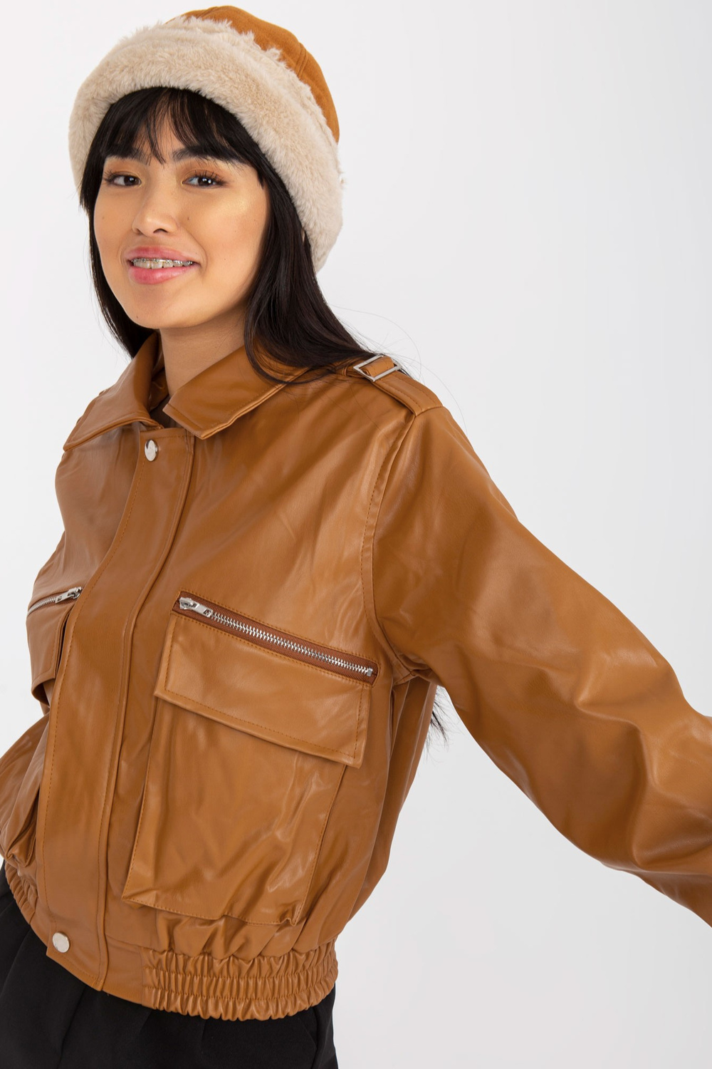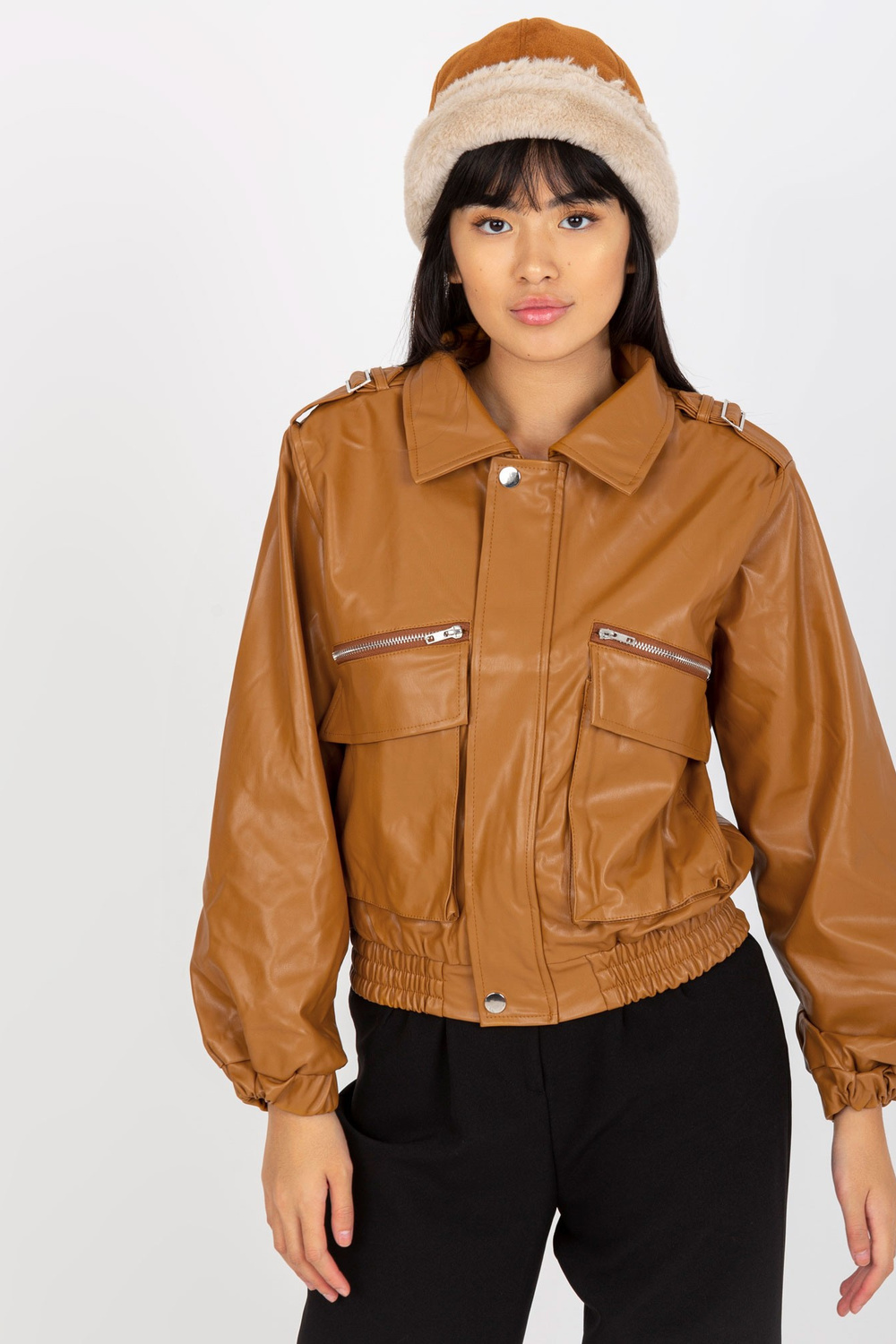 Camel trumpa striukė iš ekologiškos odos su kišenėmis. Prekės kodas: EM-KR-MC159.29X Dominuojantis raštas: lygus Stilius: laisvalaikis: laisvalaikis, į miestą, pasivaikščioti Modelis dėvi S/M dydį. Modelio matmenys: aukštis 167 cm, krūtinė 82 cm, juosmuo 64 c