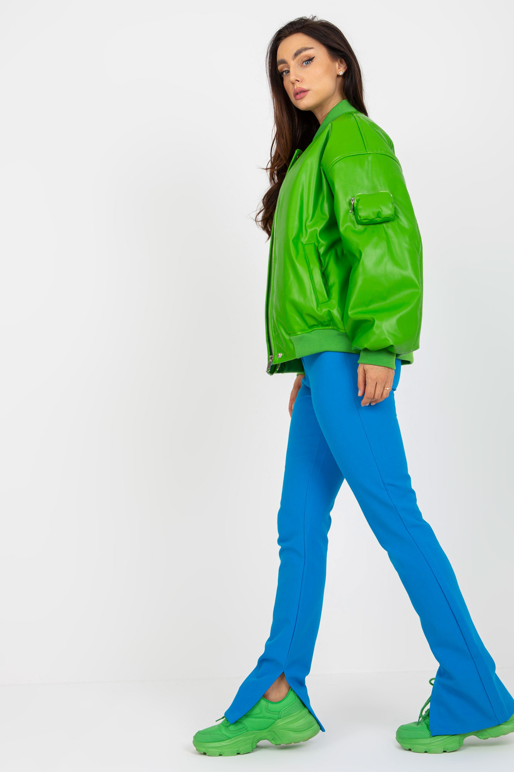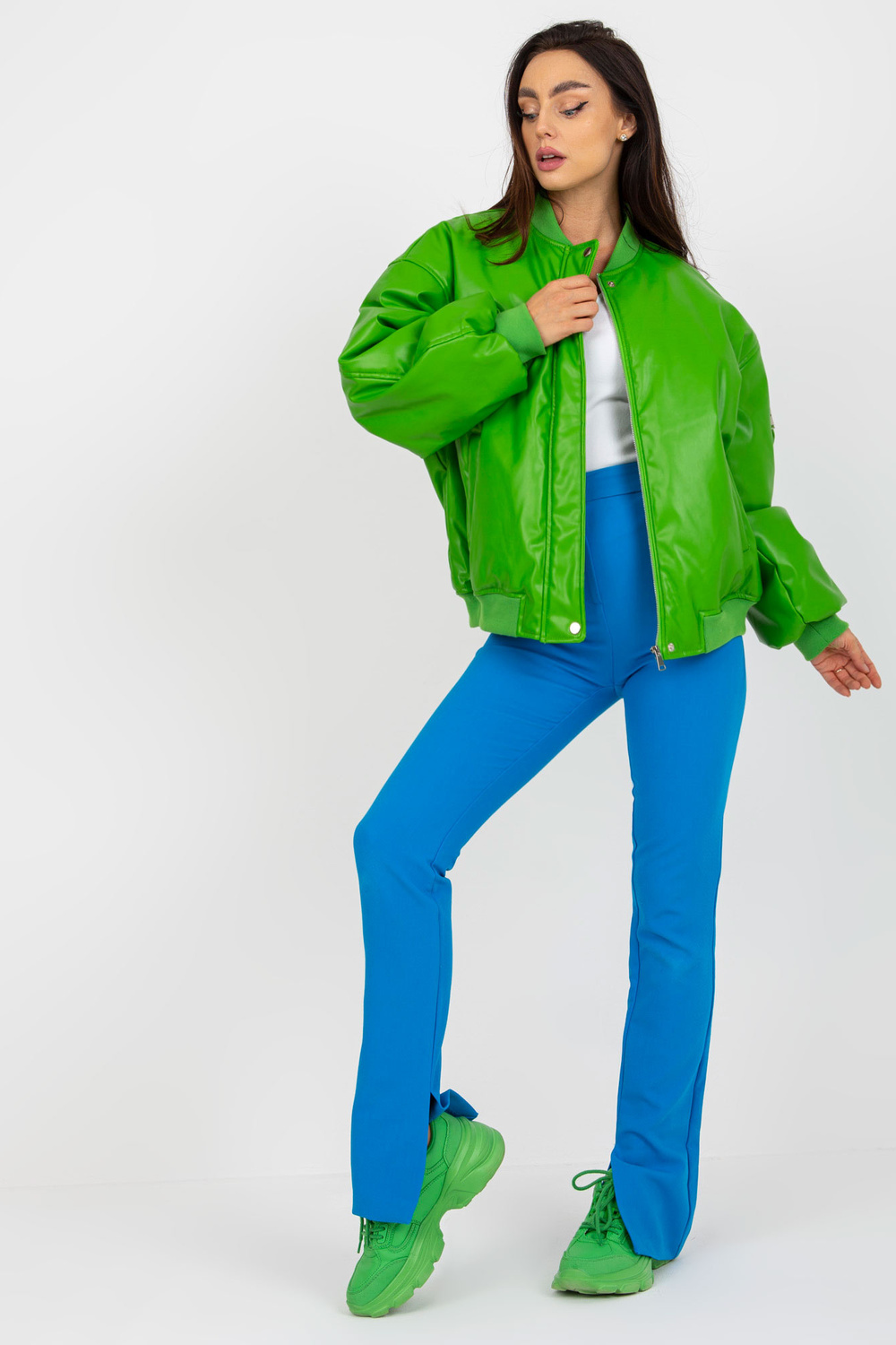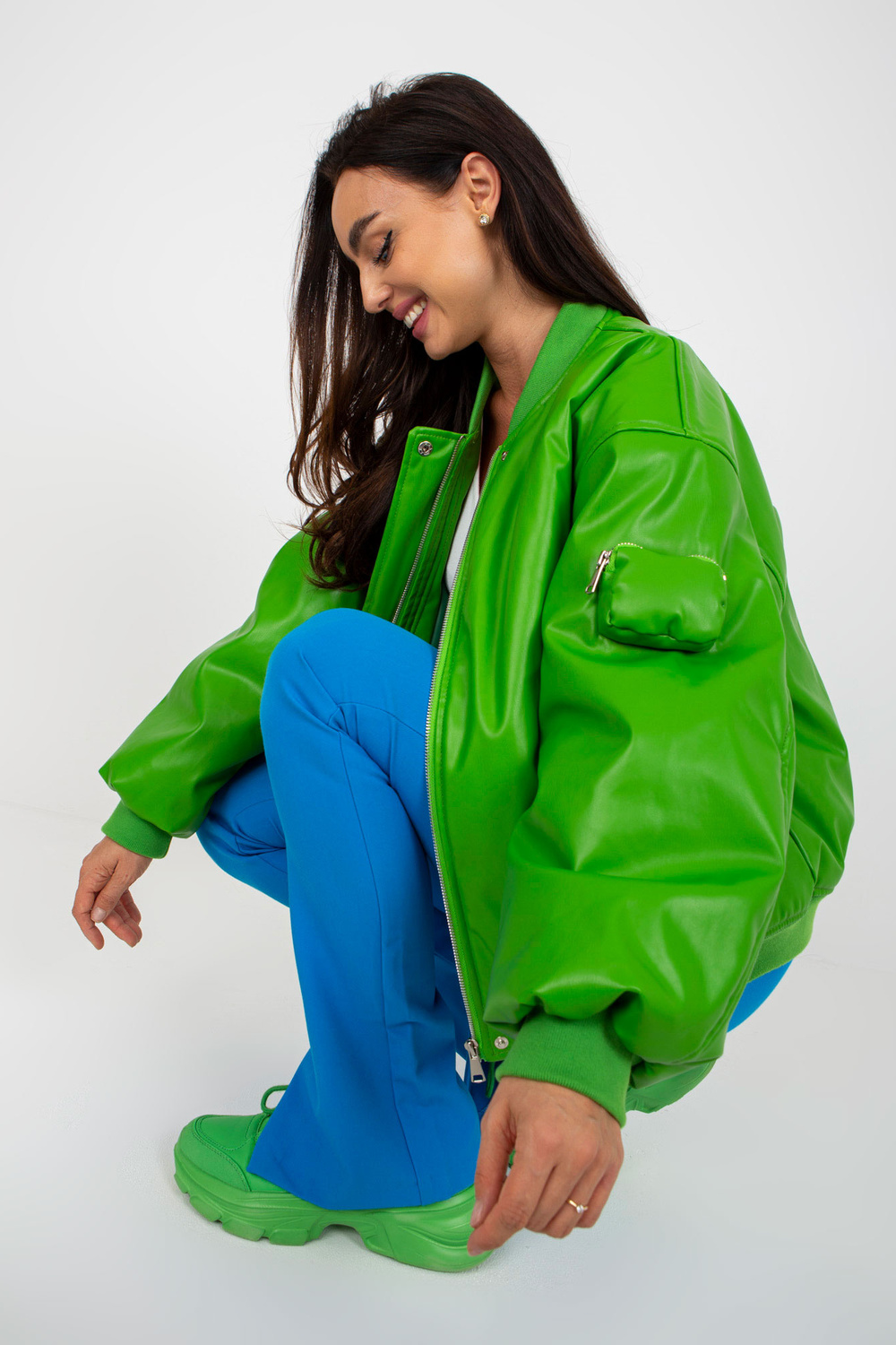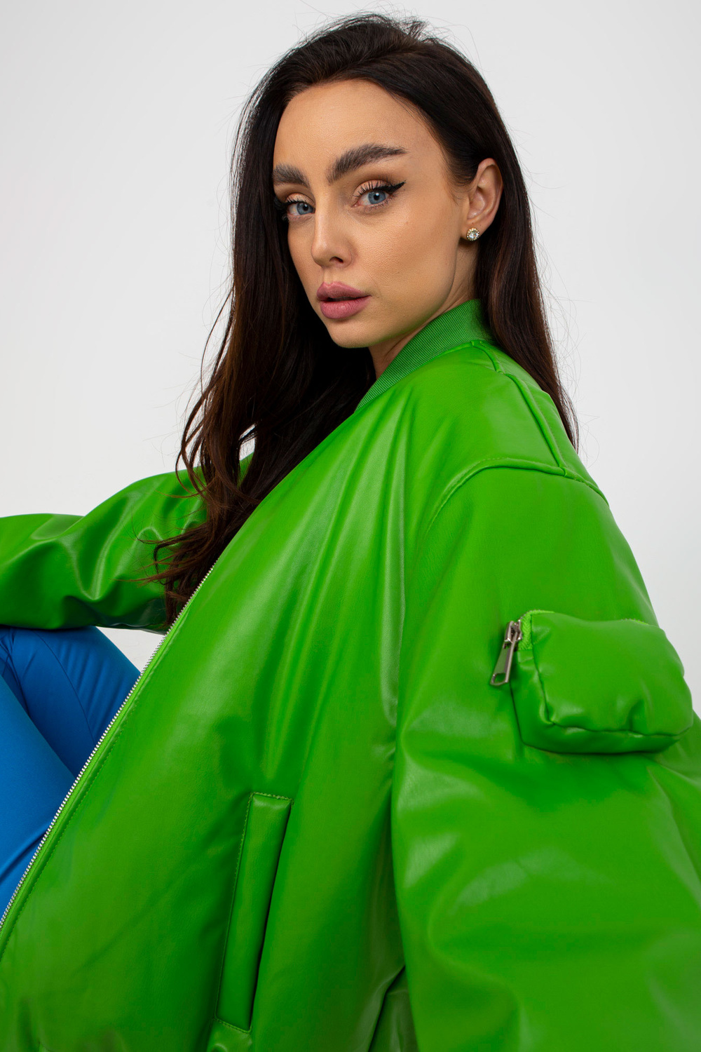 Šviesiai žalia pereinamoji bomber striukė, pagaminta iš ekologiškos odos.