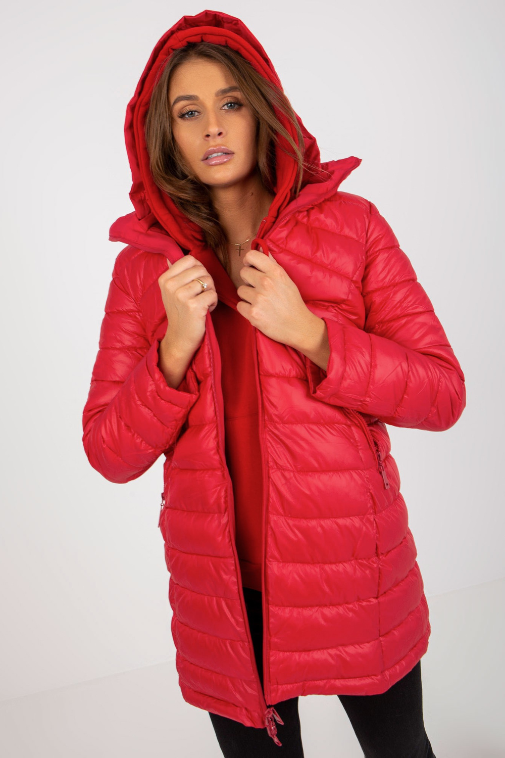 Rote doppelseitige Übergangsjacke mit Steppung.
