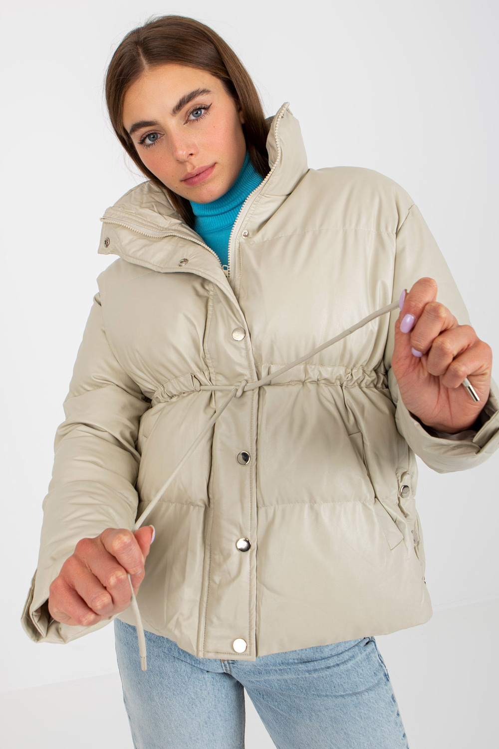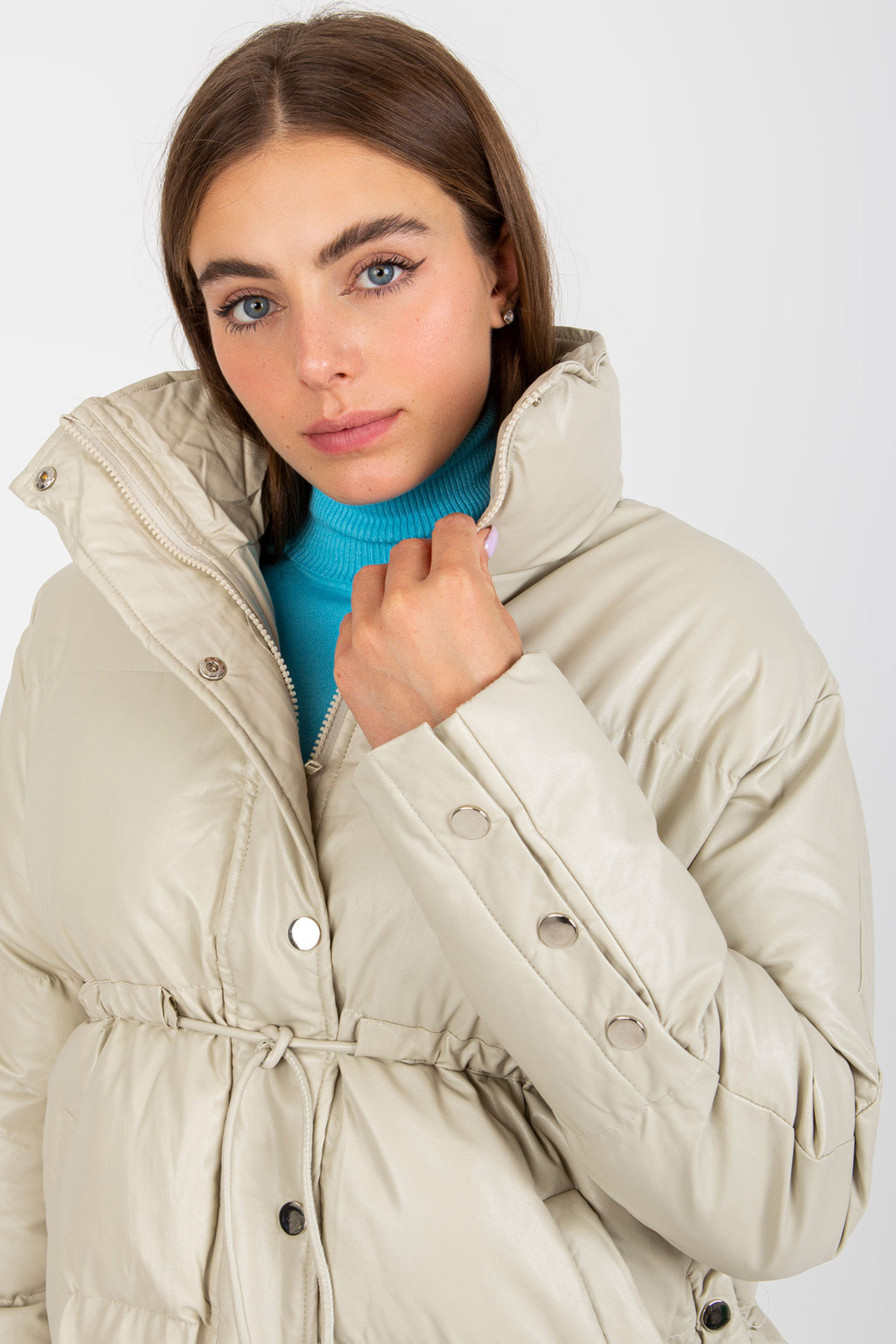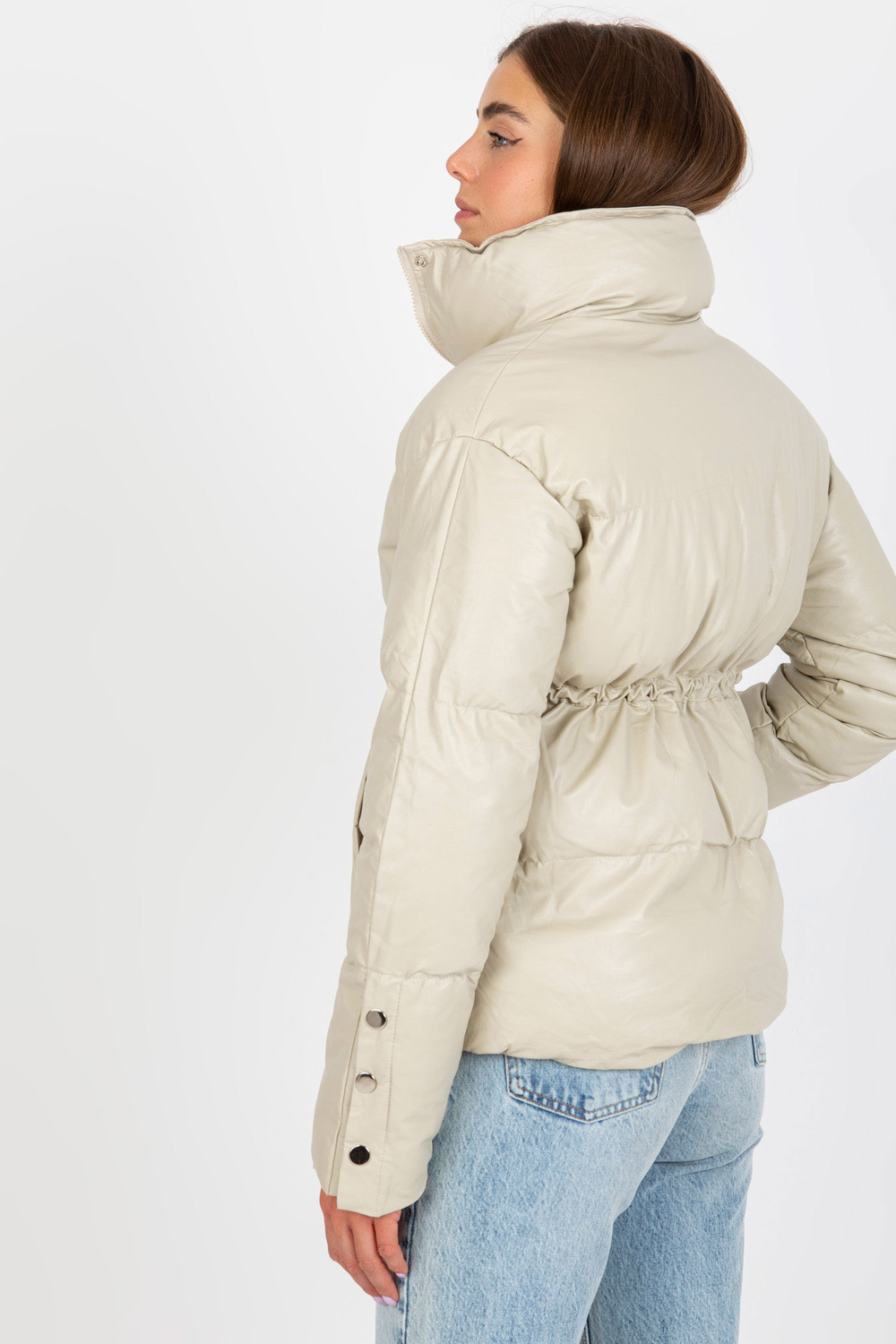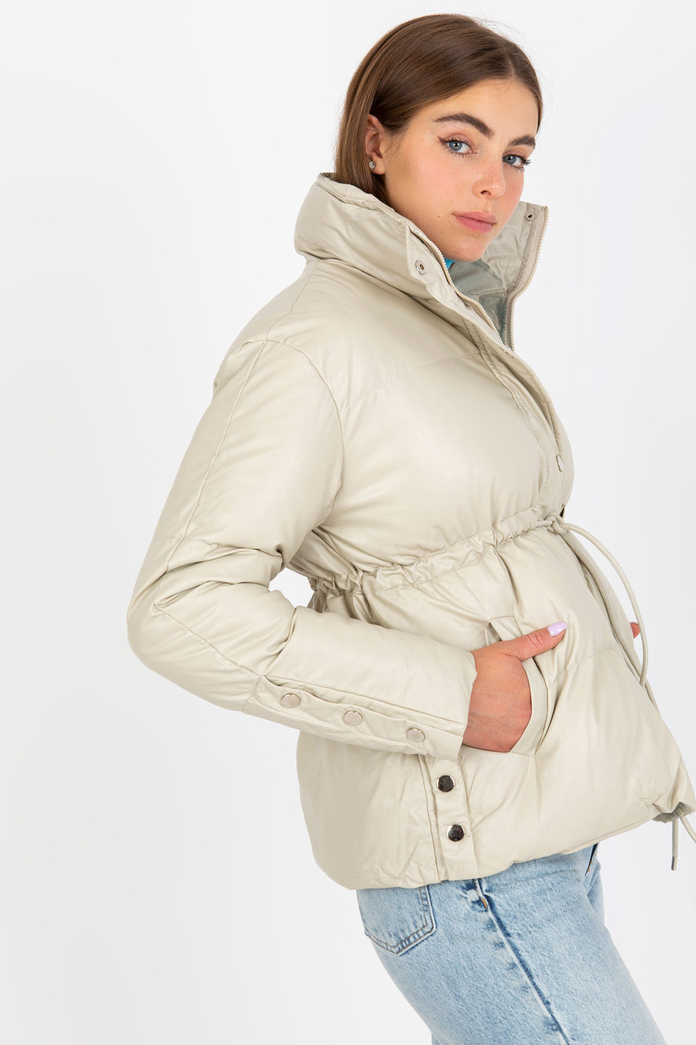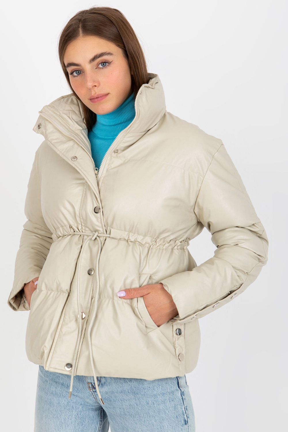 Šviesiai smėlio spalvos eko odos žieminė striukė su kišenėmis