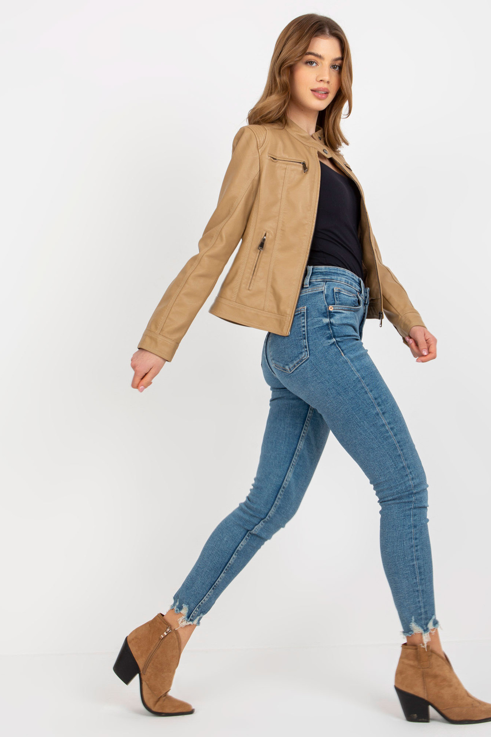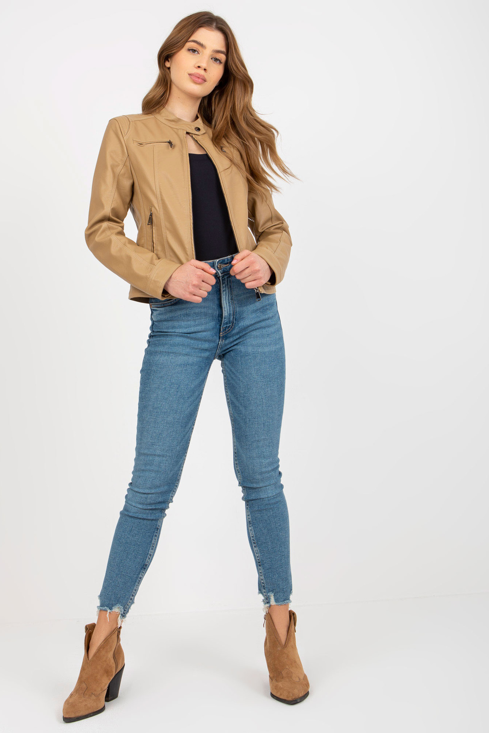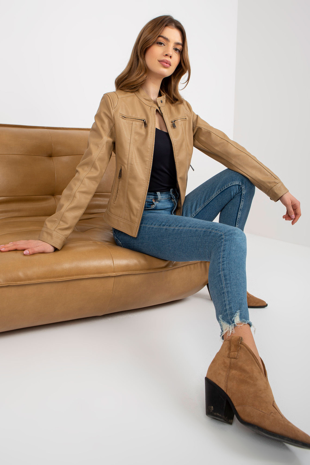Lengva kupranugario striukė iš ekologiškos odos su kišenėmis.