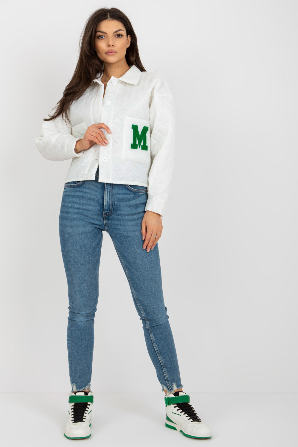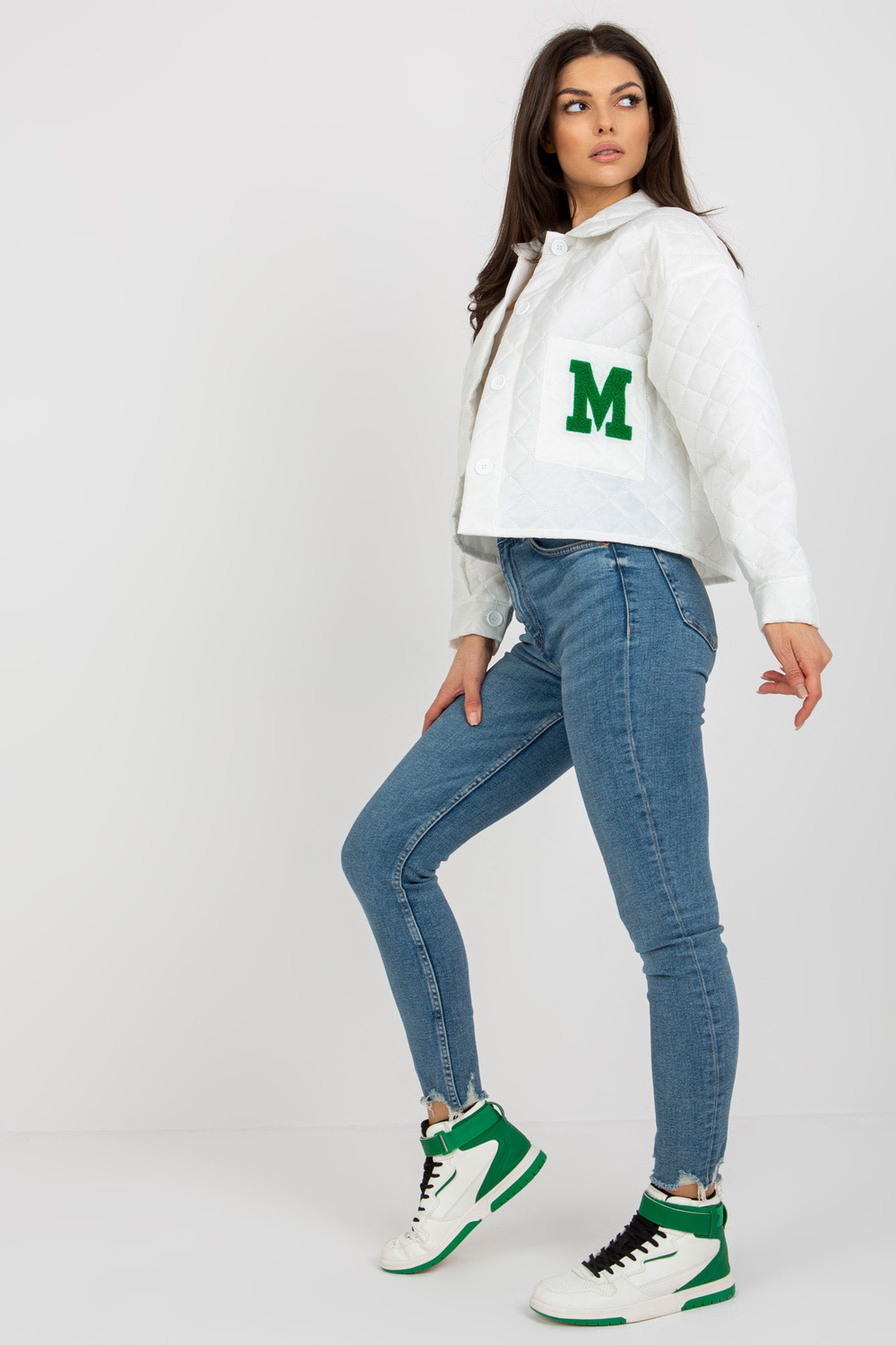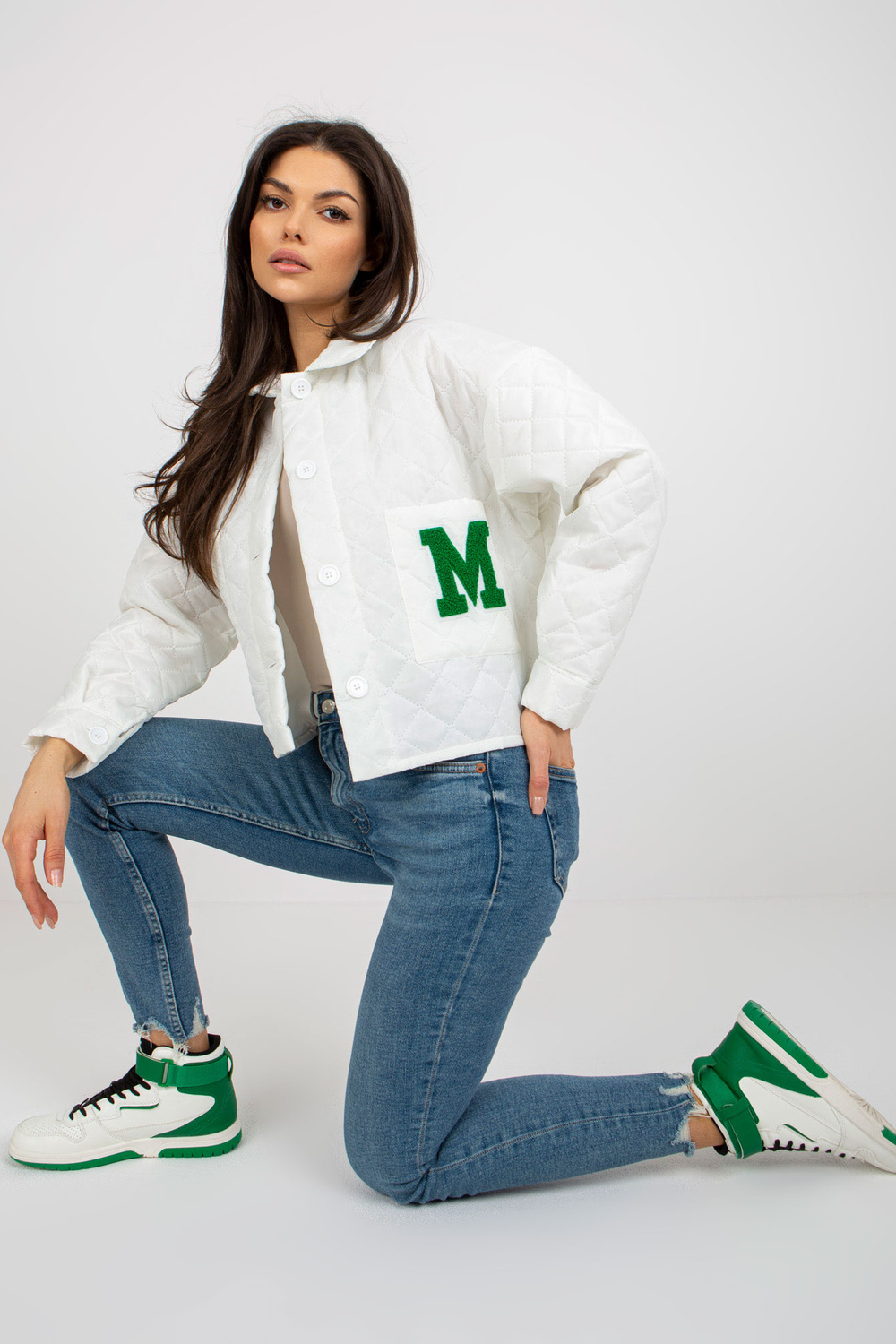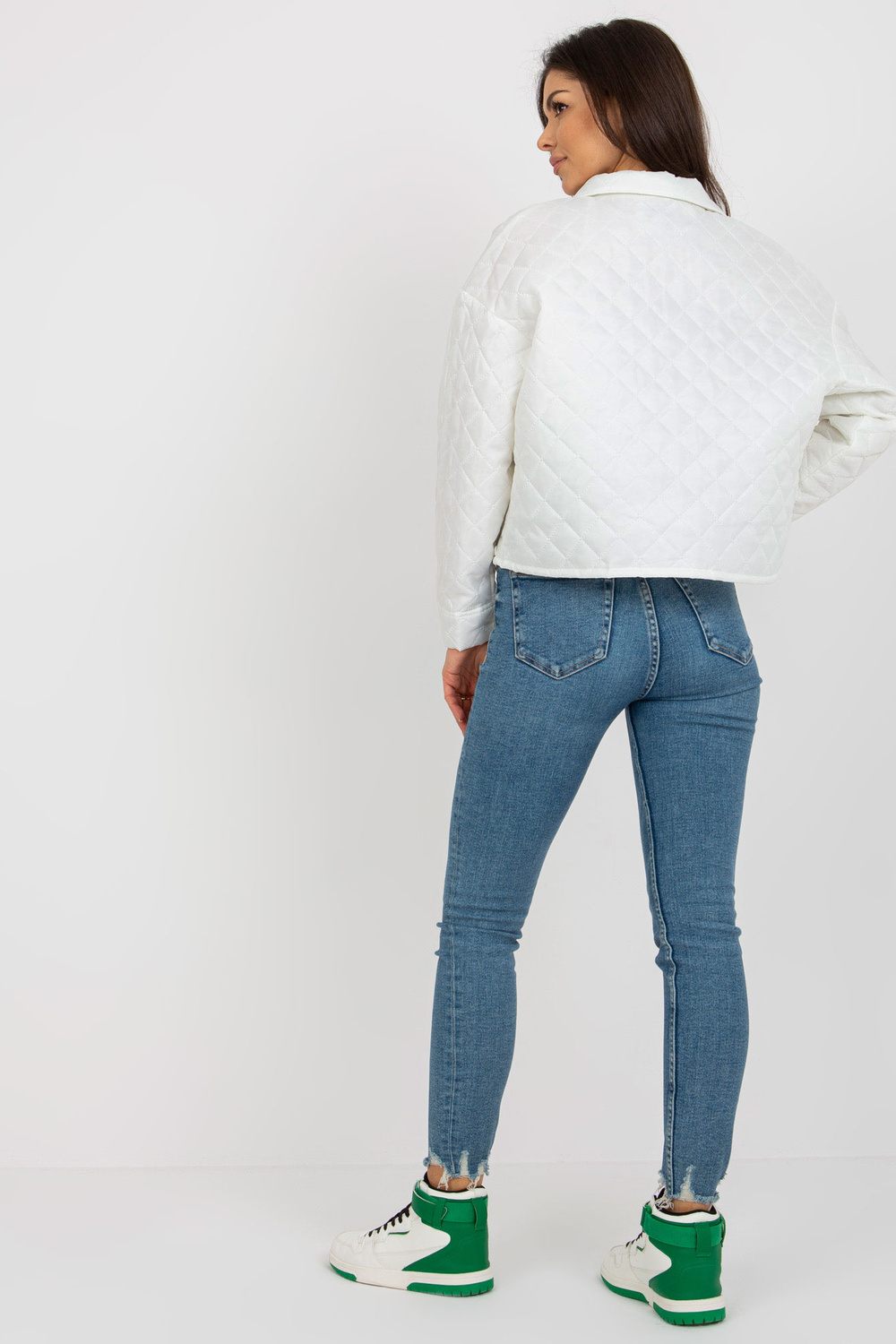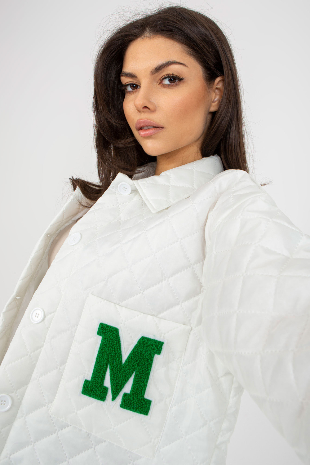 Ecru dygsniuotas pereinamasis švarkas su sagutėmis.