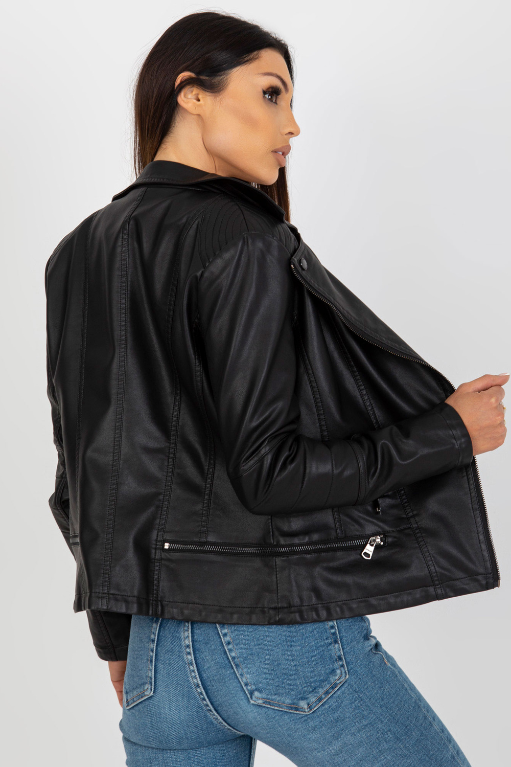 Modelis dėvi S dydį. Modelio išmatavimai: ūgis 168 cm, krūtinė 89 cm, juosmuo 60 cm, klubai 91 cm.