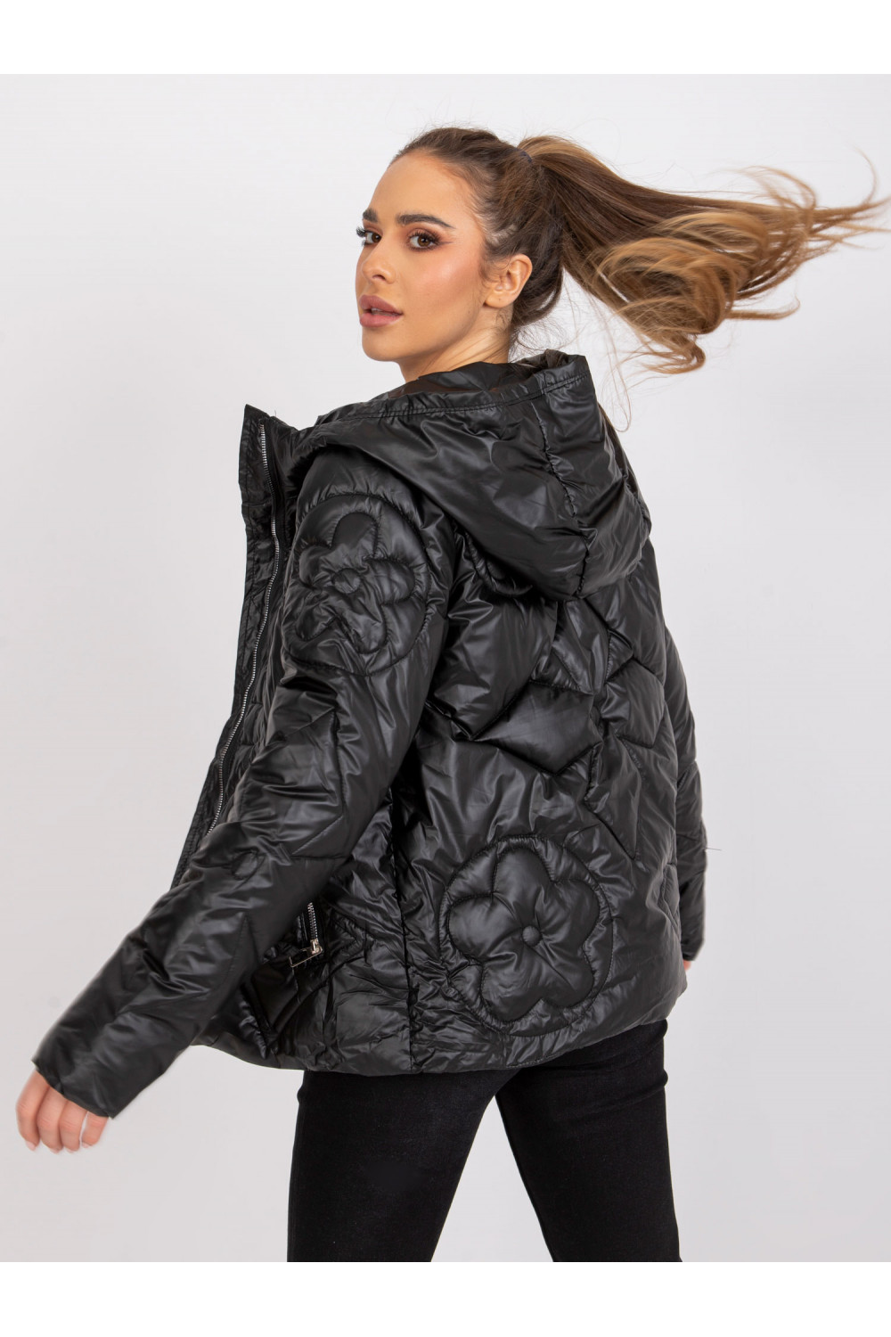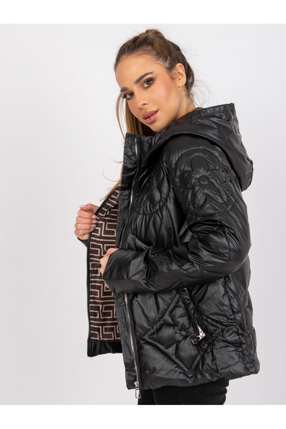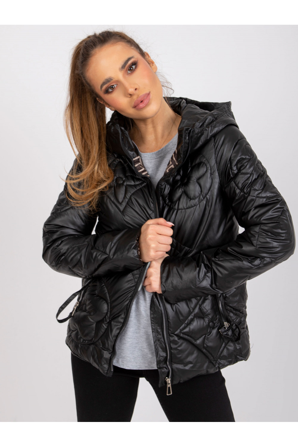 Hanojaus juoda perėjimo striukė su gobtuvu