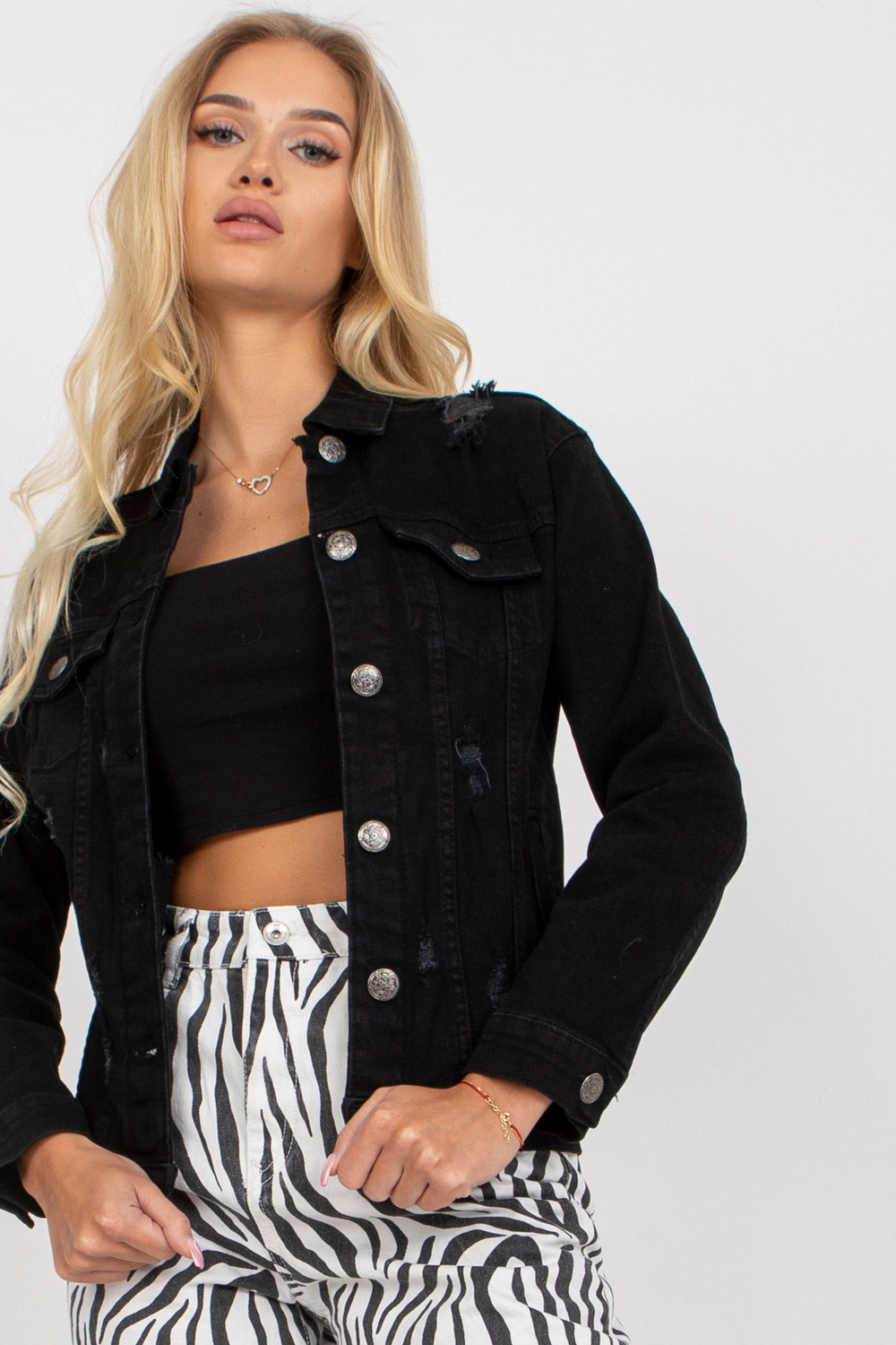 Juoda moteriška džinsinė striukė ilgomis rankovėmis RUE PARIS .