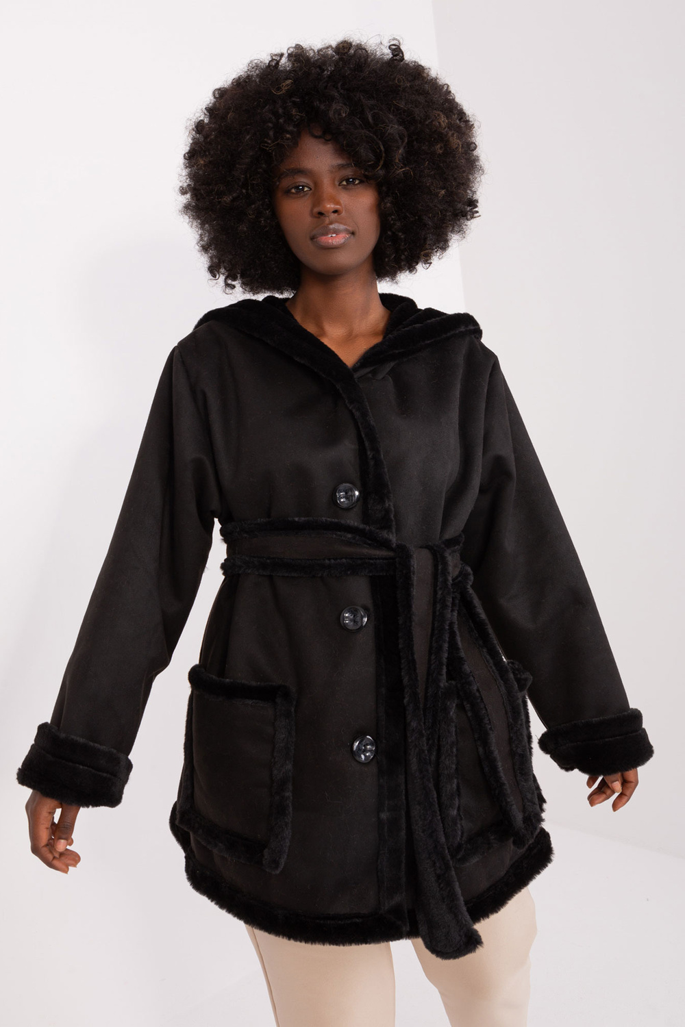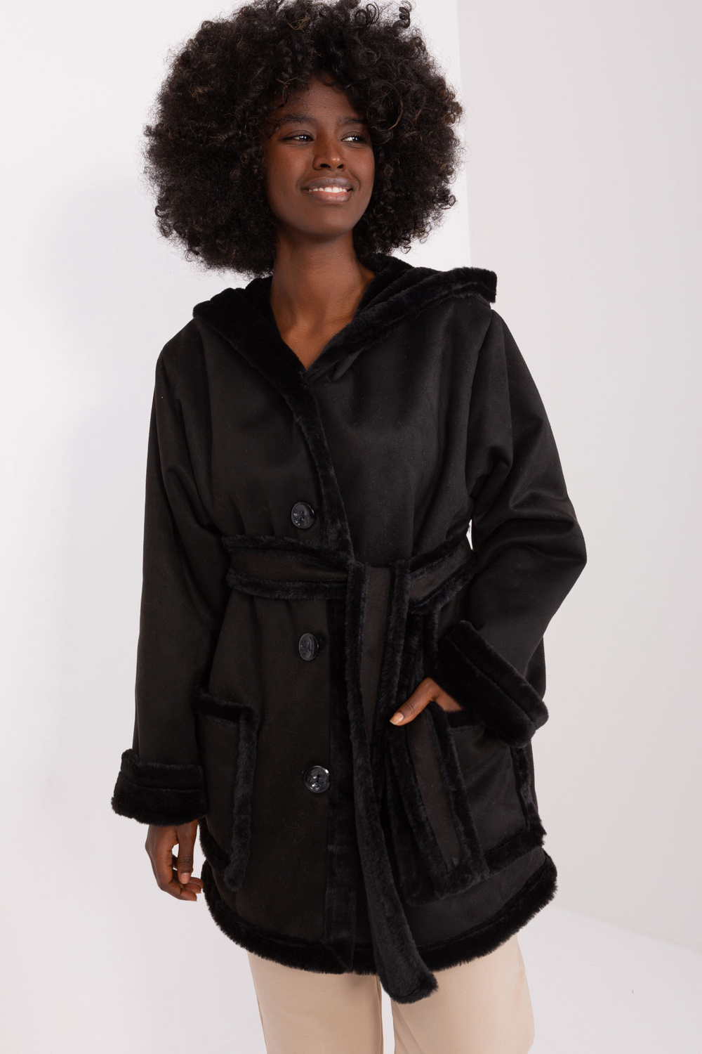 Palto matmenys S/M dydžiu matuojant plokščią: plotis pažastyje - 64 cm, bendras ilgis - 77 cm, rankovių ilgis - 62 cm.