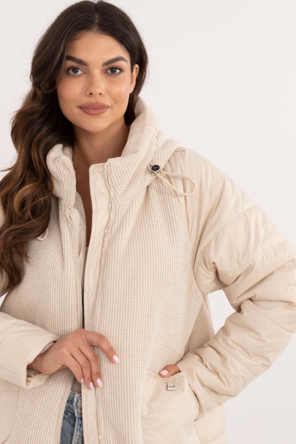 S dydžio striukės matmenys, matuojamas plokščias: pažasties plotis - 56 cm, bendras ilgis - 81 cm, rankovių ilgis - 65 cm.