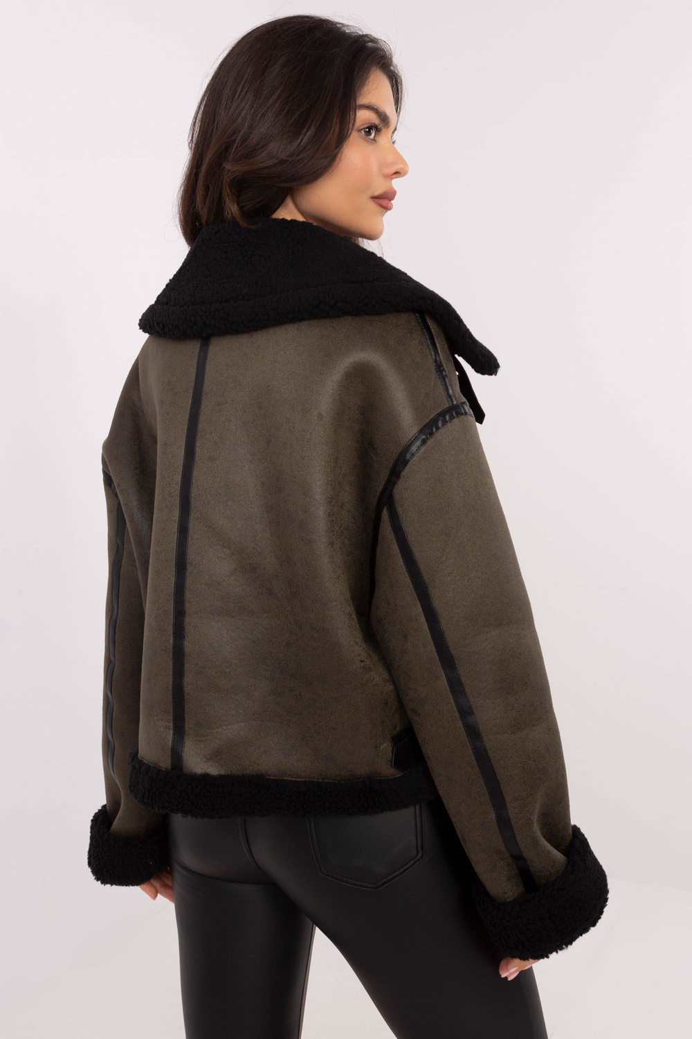 Švarko matmenys S/M dydžio, matuojamas plokščias: plotis po rankomis - 64 cm, bendras ilgis - 59 cm, rankovių ilgis - 60 cm (nuo siūlės)