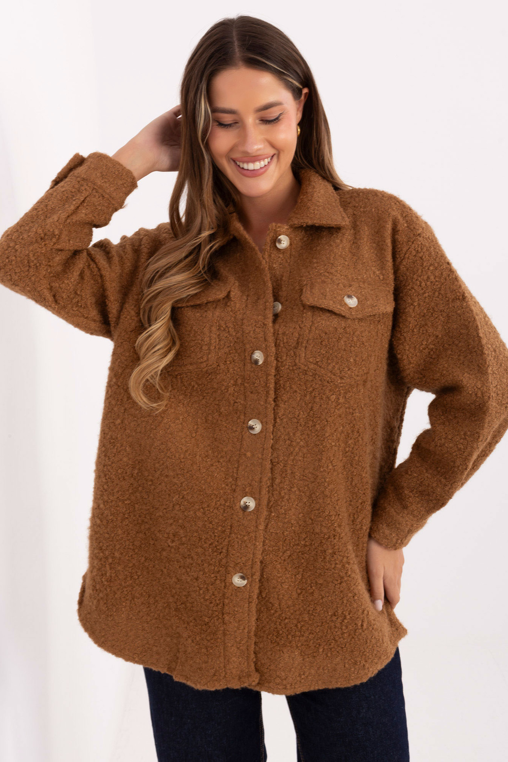 Kardigano matmenys S/M dydžio: plotis po pažastimis - 60 cm, bendras ilgis - 77 cm, rankovės ilgis - 54 cm (nuo siūlės), plotis ties klubais - 63 cm.