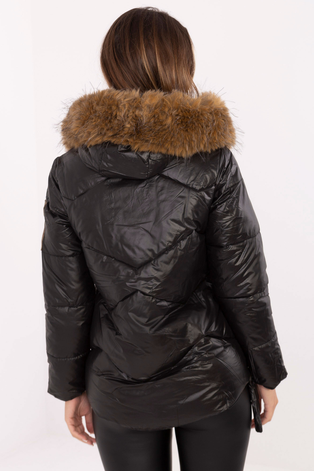 Vieno dydžio striukės matmenys: plotis po pažastimis - 55 cm, bendras ilgis - 65 cm (priekyje), bendras ilgis - 71 cm (gale), rankovės ilgis - 71 cm (nuo siūlės), plotis klubuose - 57 cm.