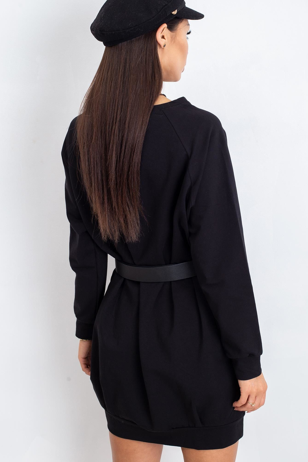 Suknelės matmenys S/M dydžiu, matuojami plokščiai: plotis po pažastys - 56 cm, bendras ilgis - 90 cm, rankovių ilgis - 58 cm