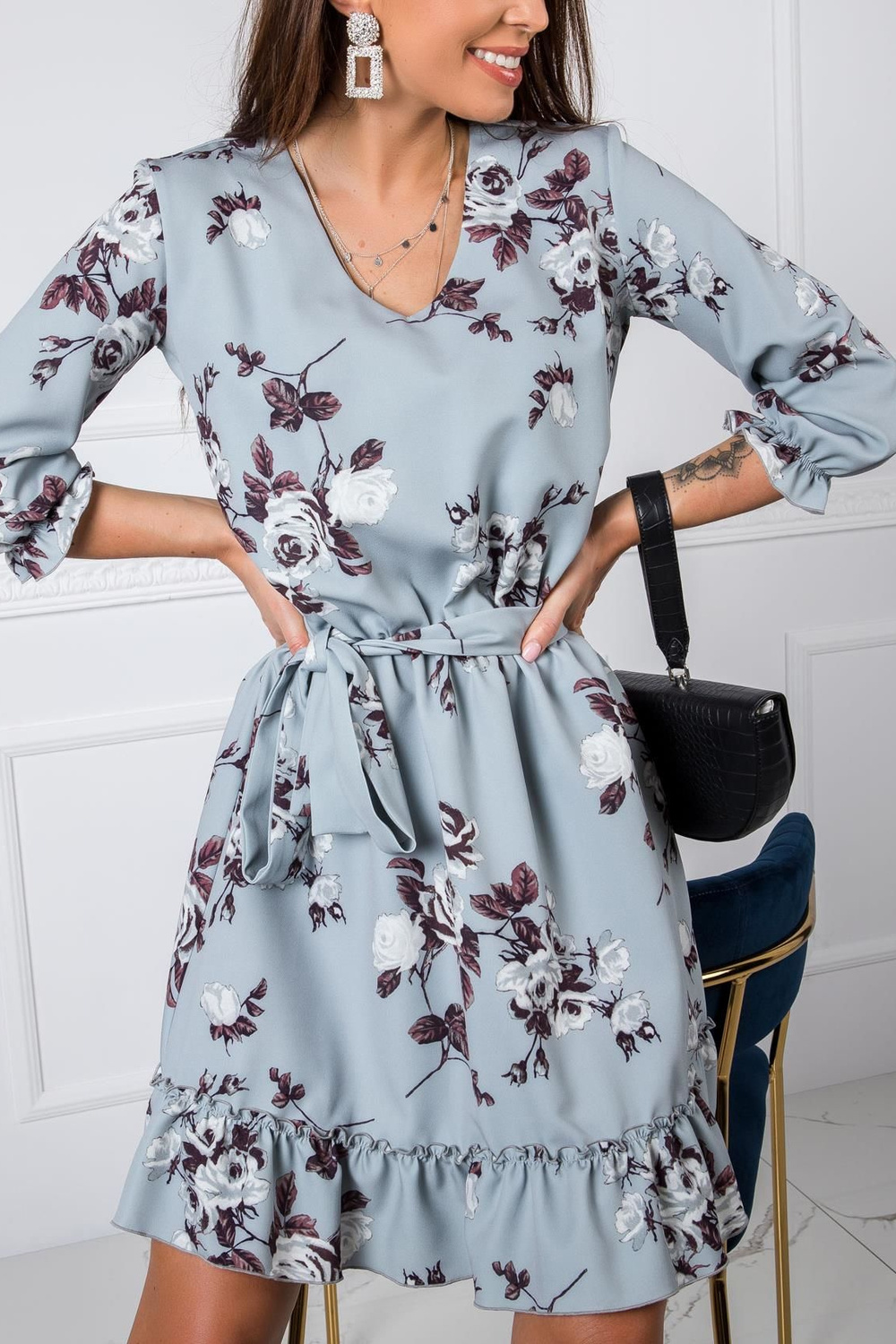 GreyPolly suknelė. priedai: dirželio medžiagasudėtis: 50% medvilnė, 45% poliesteris, 5% likra skalbimo būdas: skalbimas mašinoje 30°C. Modelis dėvi S dydį. modelis: ūgis 174 cm, krūtinė 84 cm, juosmuo 61 cm, klubai 93 cm .