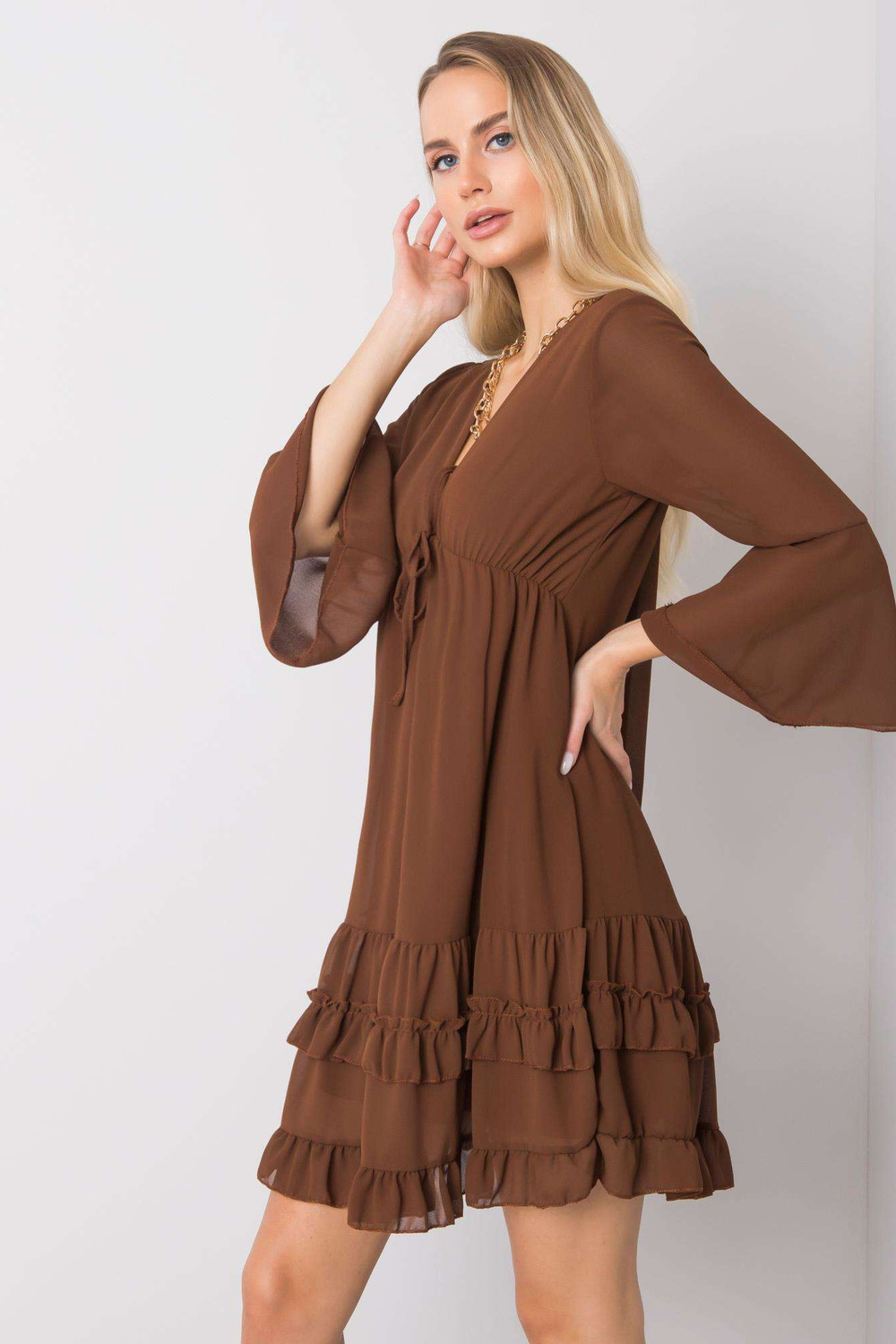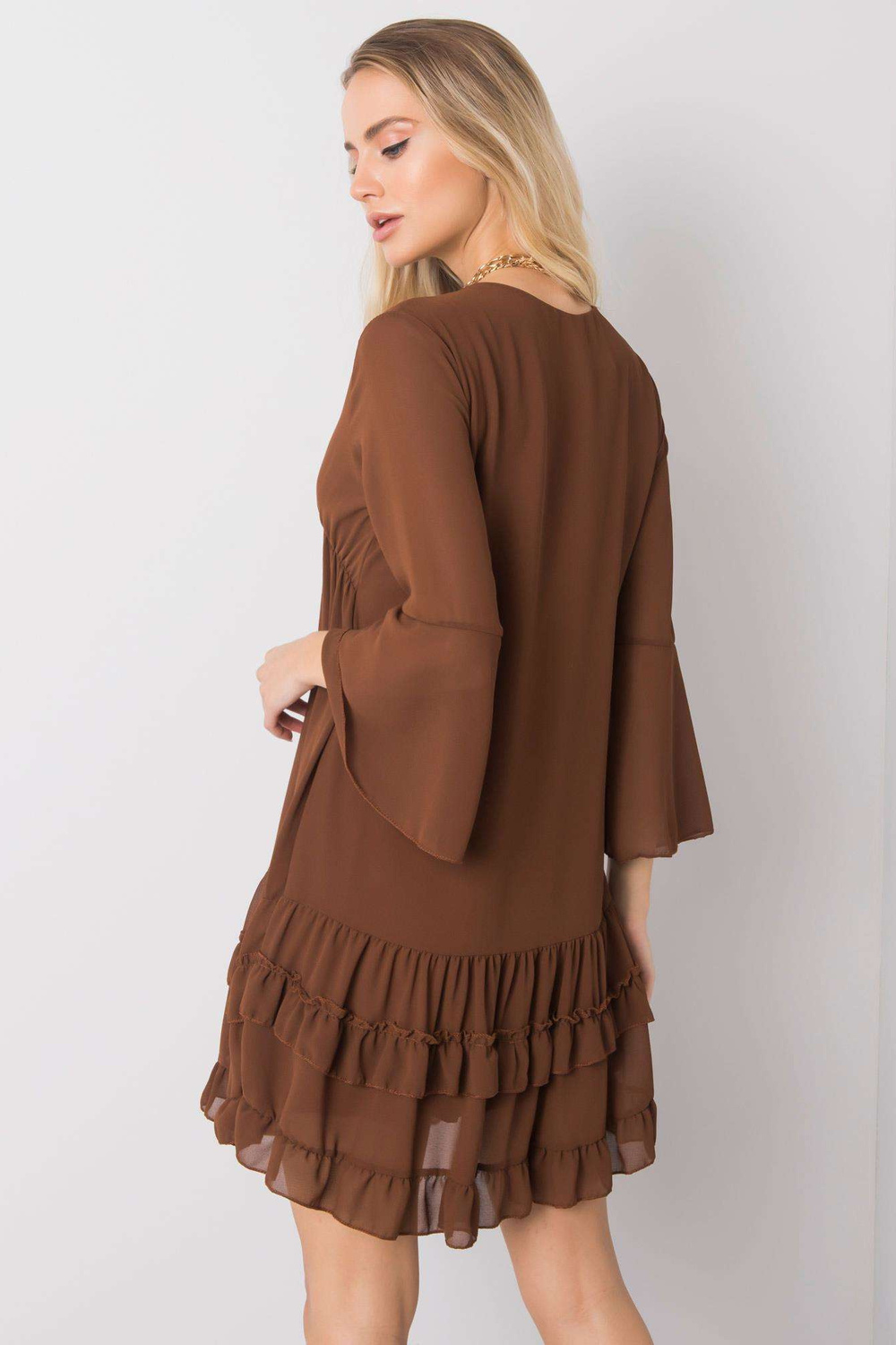 Matmenys Vieno dydžio suknelė išmatuota plokščia: plotis po pažastimis - 39 cm, bendras ilgis - 85 cm, rankovių ilgis - 46 cm