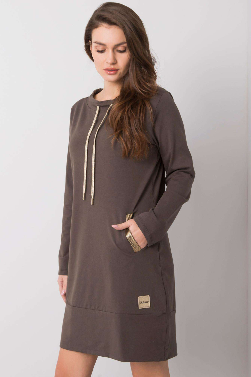 Suknelės matmenys S/M dydžiu, matuojami plokščiai: plotis po pažastimis - 48 cm, rankovių ilgis - 59 cm, bendras ilgis - 85 cm