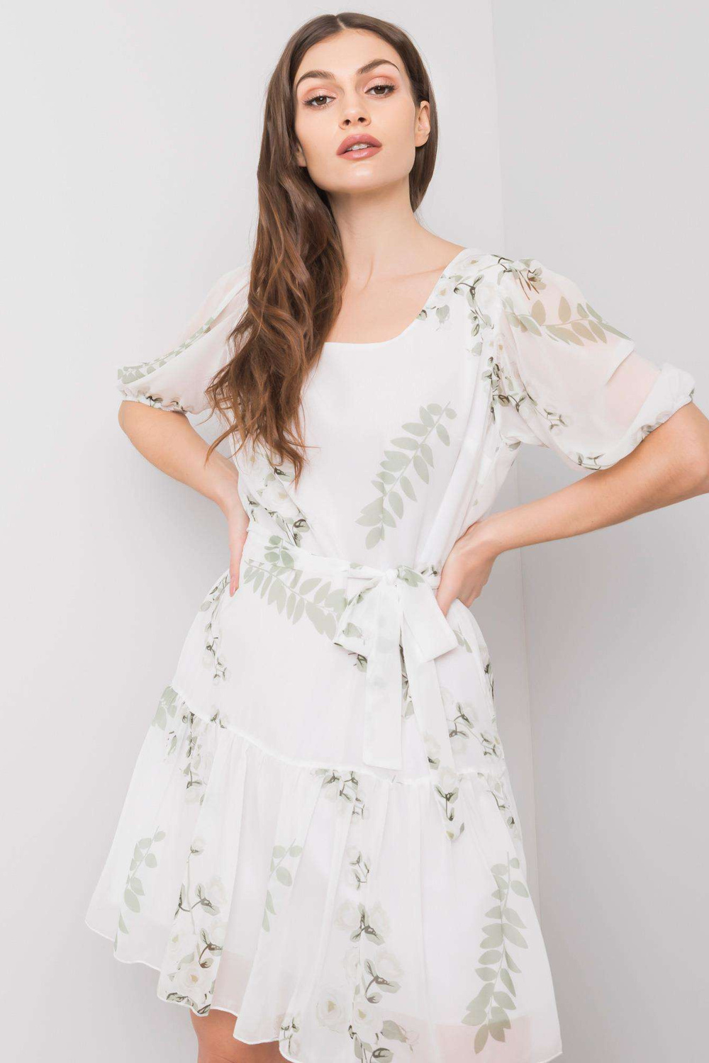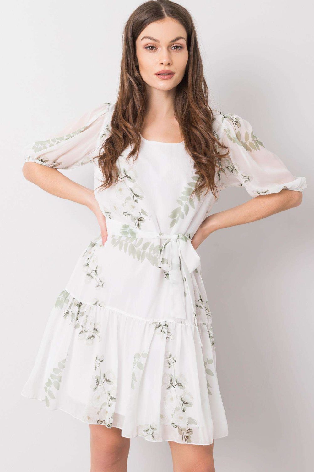 Modelis dėvi 36 dydį. Modelio išmatavimai: aukštis 170 cm, krūtinė 93 cm, juosmuo 66 cm, klubai 93 cm.