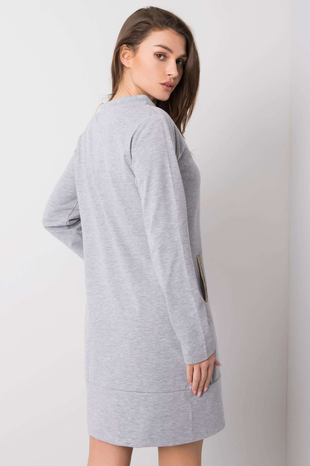 Suknelės matmenys S/M dydžiu, matuojami plokščiai: plotis po pažastimis - 48 cm, rankovių ilgis - 59 cm, bendras ilgis - 85 cm