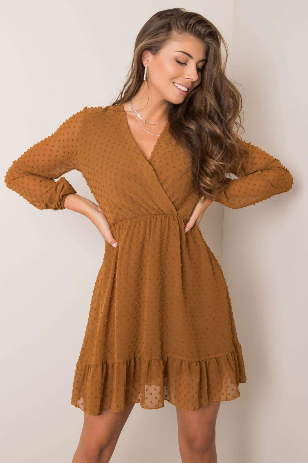 Ruda suknelė Noella SUBLEVEL yra elegantiškos ir klasikinės elegancijos sinonimas. Jei norite jaustis neįtikėtinai moteriška, būtinai įtraukite ją į savo kolekciją. Suknelė kitų fone išsiskiria kruopščiu madingo plumenti audinio apdirbimu. Pristatomas modelis turi trikampę iškirptę ir ilgas rankoves. Apačioje apdaila raukinių pavidalu. Produktas turi raukinius, kurie paslepia silueto trūkumus pilvo ir klubų srityje. Mūsų stilinga suknelė yra labai universali, todėl ją dėvėsite daugybe progų. Jis pravers, kai turėsite svarbų susitikimą mieste, pasimatymą ar šeimos šventę. Kasdieniame leidime galite nešioti karvių merginų ir pirkėjų kompanijoje. Jei norite išskirtinai elegantiško stiliaus, rinkitės aukštakulnius, rankines ir auksinius papuošalus. Užsukite pas mus ir pasipuoškite savo nauja mėgstamiausia suknele!