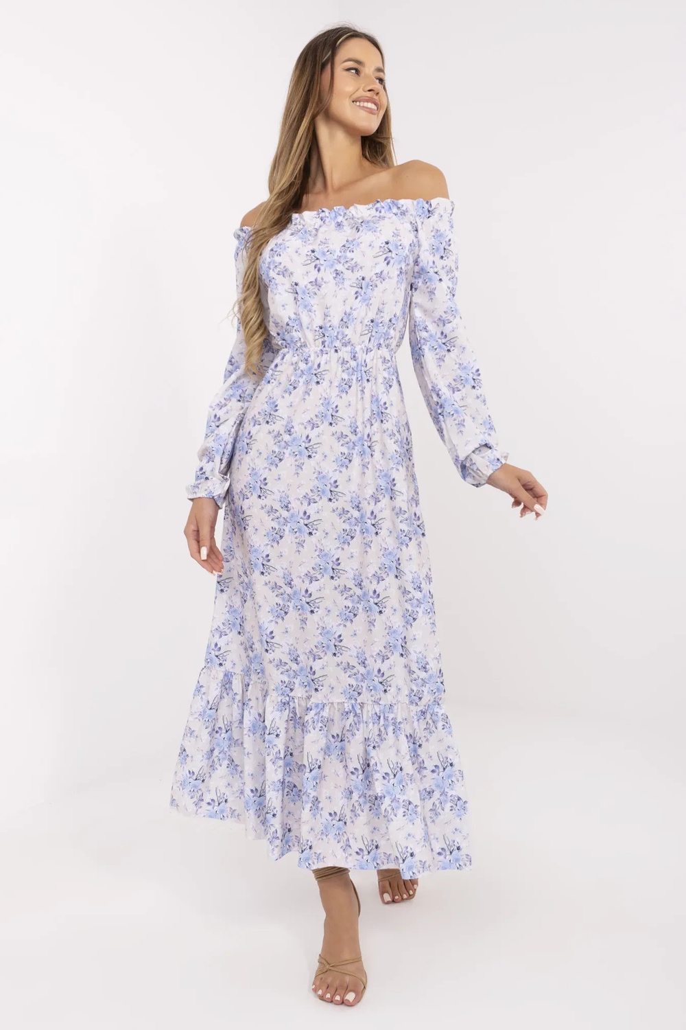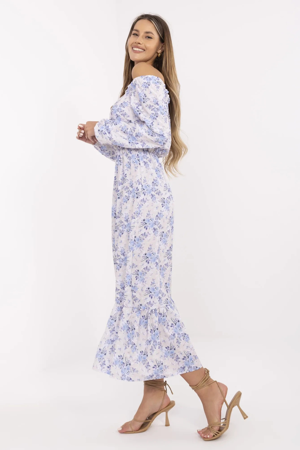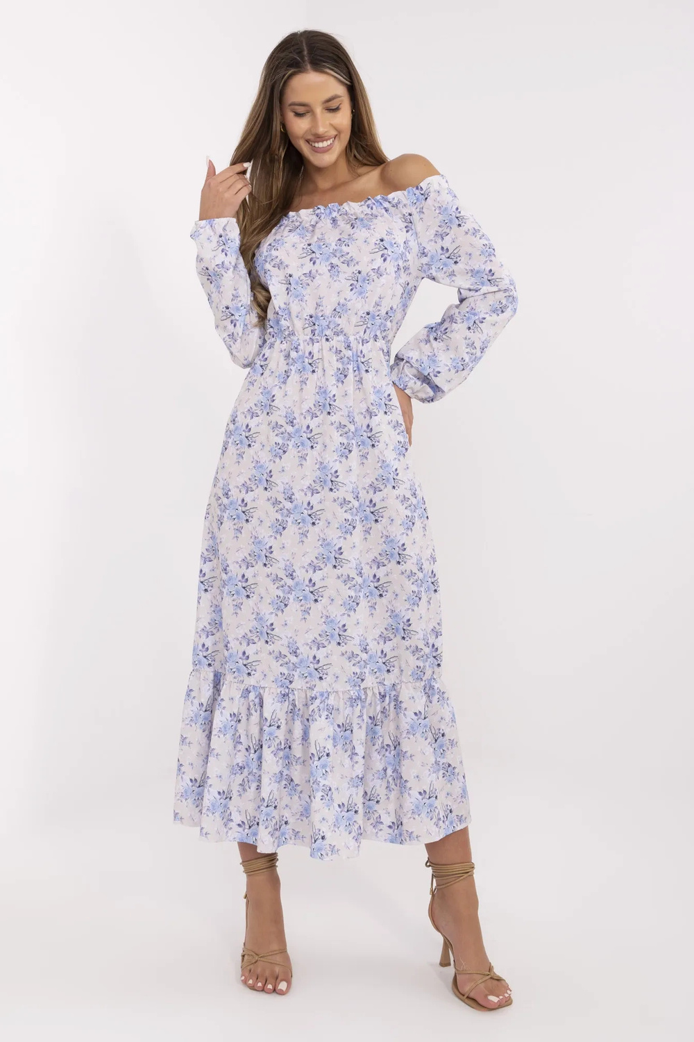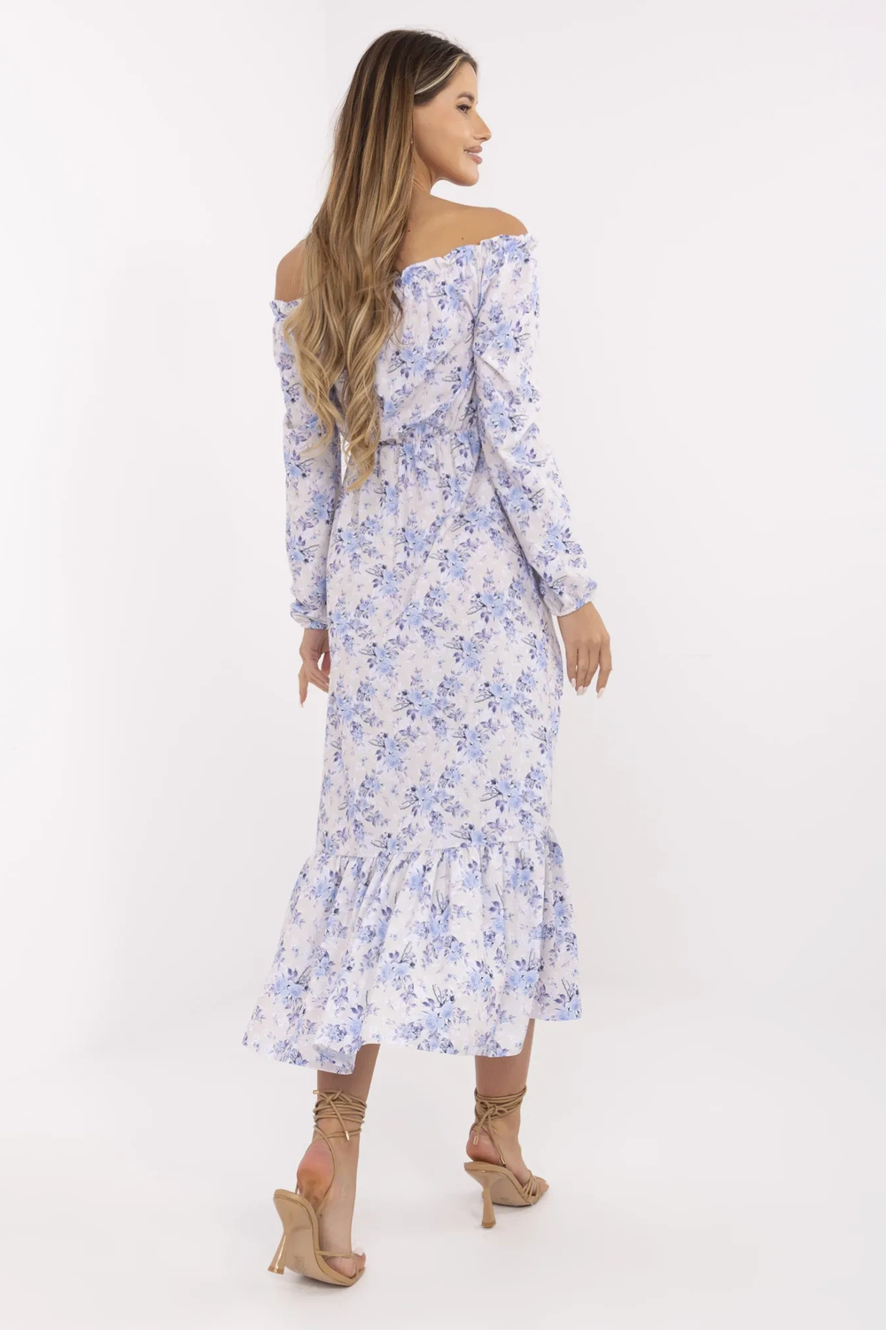 Smėlio ir mėlynos spalvos ispaniška suknelė Alodie RUE PARIS. medžiagos sudėtis: 95% poliesteris, 5% elastanas skalbimo būdas: skalbimas rankomis 30°C. Modelis dėvi S dydį. Modelio matmenys: aukštis 180 cm, krūtinė 89 cm, juosmuo 63 cm, klubai 93 cm. Suknelės matmenys