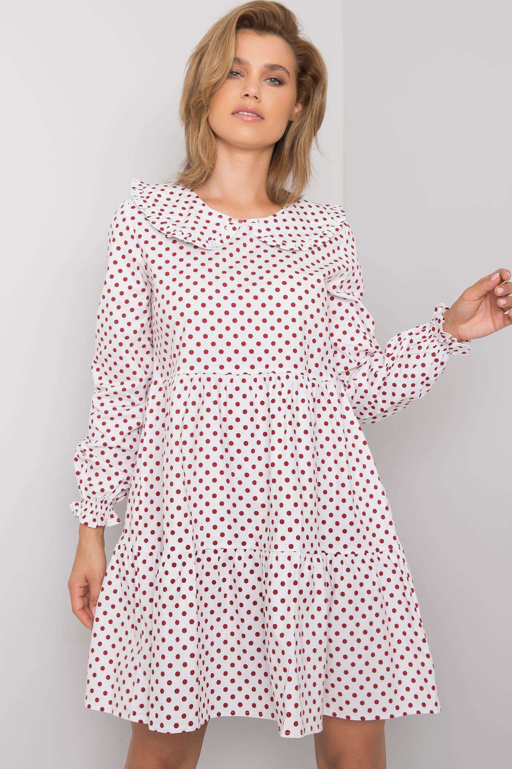 Balta ir raudona taškuota suknelė Rori RUE PARIS. aksesuarai: kišenės medžiaga sudėtis: 100% medvilnė skalbimo būdas: skalbimas 30°C. Modelis dėvi S dydį. Modelio išmatavimai: aukštis 170 cm, krūtinė 89 cm, juosmuo 59 cm, klubai 85,5 cm. Matmenysso