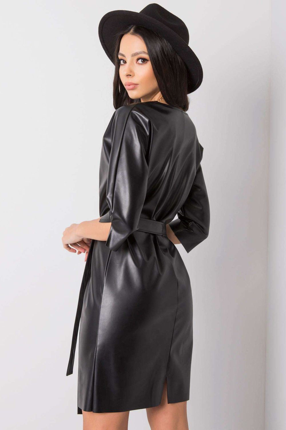 Enricablack ekologiškos odos suknelė. priedai: dirželio medžiagasudėtis: 85% poliesteris, 15% likra Skalbimo būdas: skalbimas mašinoje 30°C Modelis dėvi 36 dydį. Modelio išmatavimai: aukštis 175 cm, krūtinė 84 cm, juosmuo 61 cm, klubai 91 cm. Suknelės matmenys s