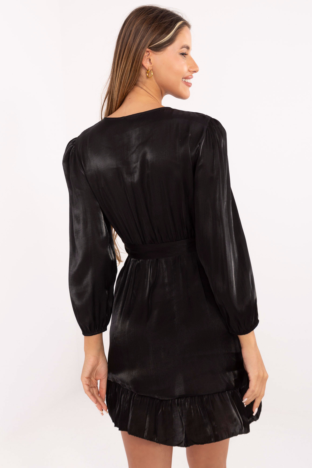 Džeinės juoda pūkuota suknelė. priedai: dirželio medžiagasudėtis: 95% poliesteris, 5% elastanas skalbimo būdas: skalbimas mašinoje 30°C. Modelis dėvi vieno dydžio dydį. Modelio matmenys: aukštis 175 cm, krūtinė 84 cm, juosmuo 65 cm, klubai 92 cm. Vieno dydžio matmenys