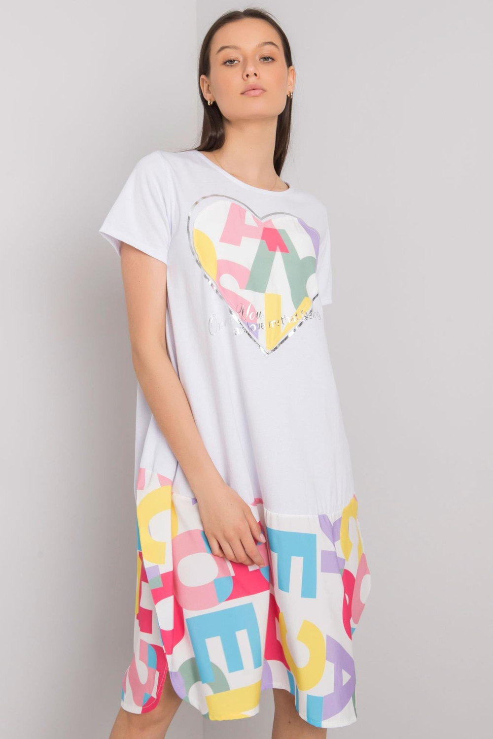 Vieno dydžio suknelės matmenys išmatuoti plokščiai: plotis pažastyje - 46 cm, bendras ilgis - 97 cm
