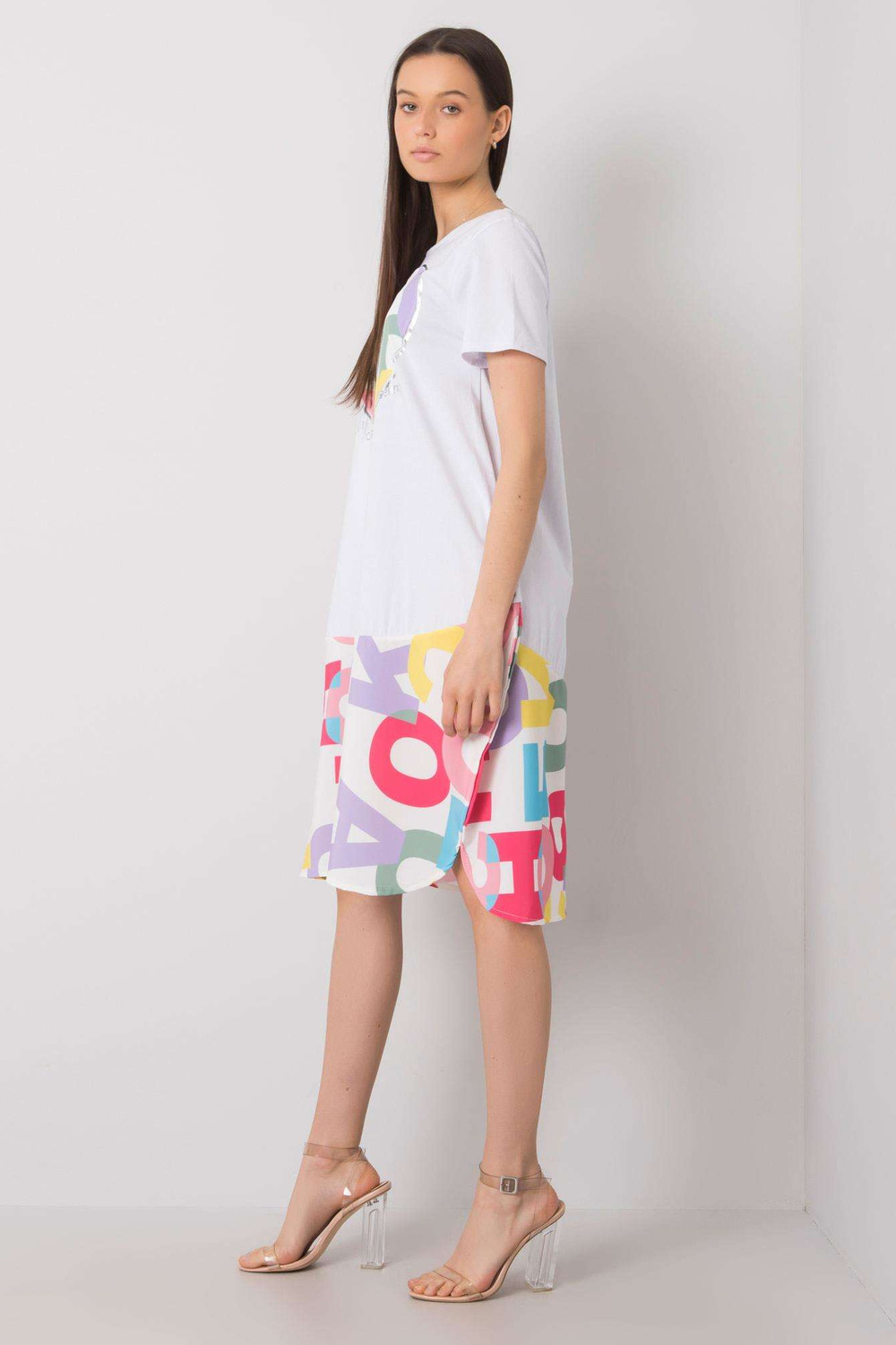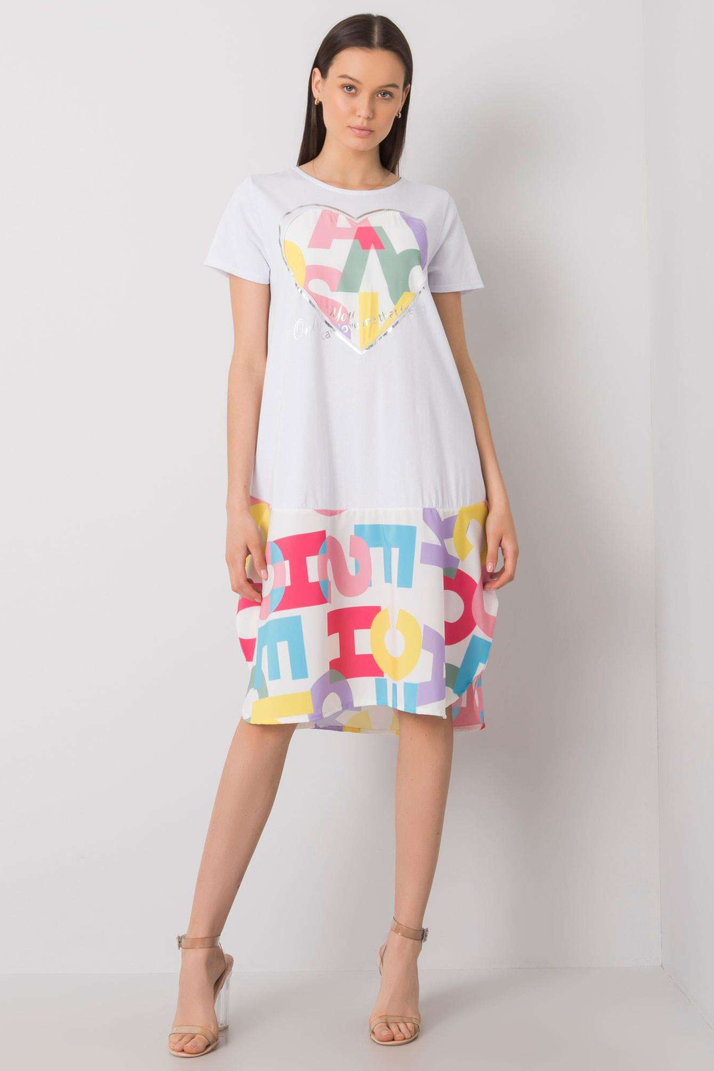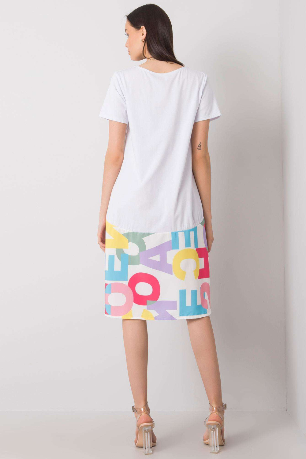 Balta suknelė su Ginevere raštais.