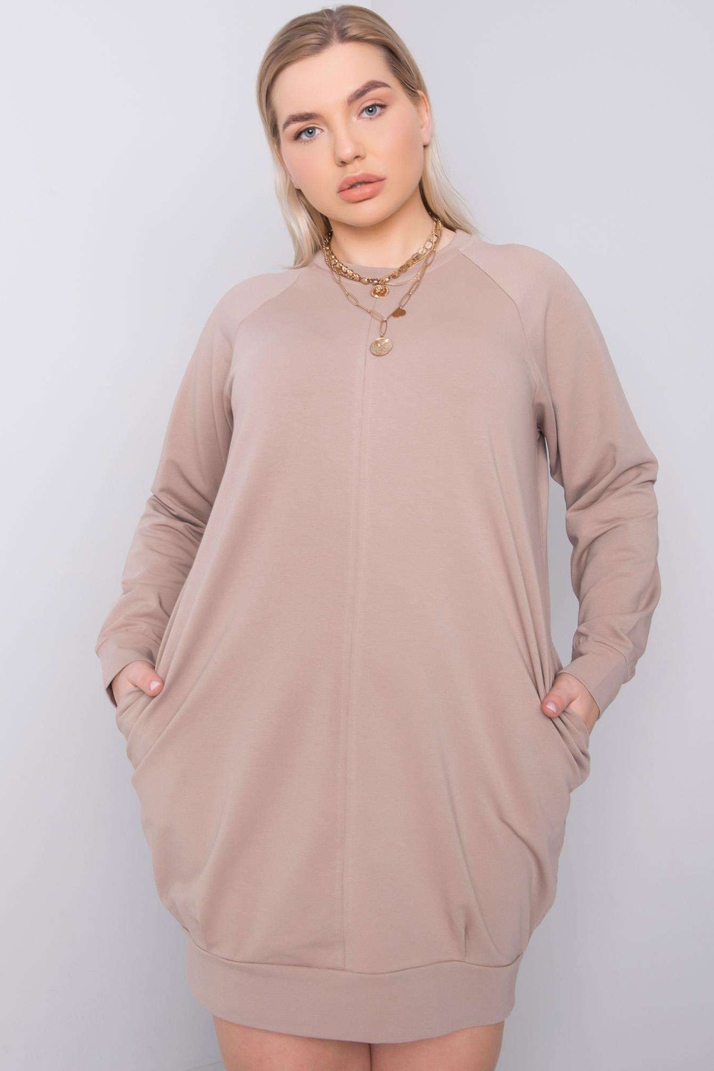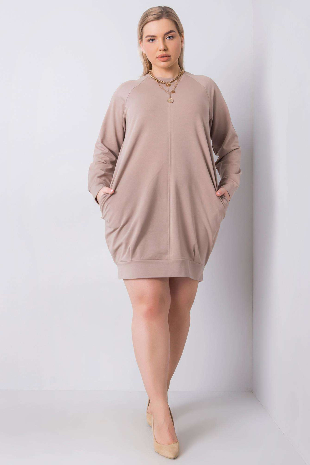 Tamsiai smėlio spalvos plius dydžio Ariadne suknelė.