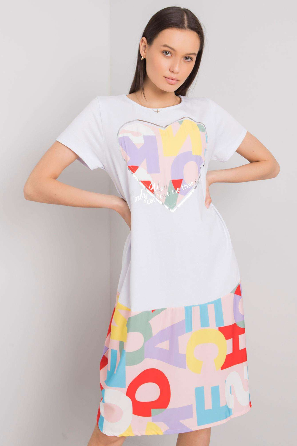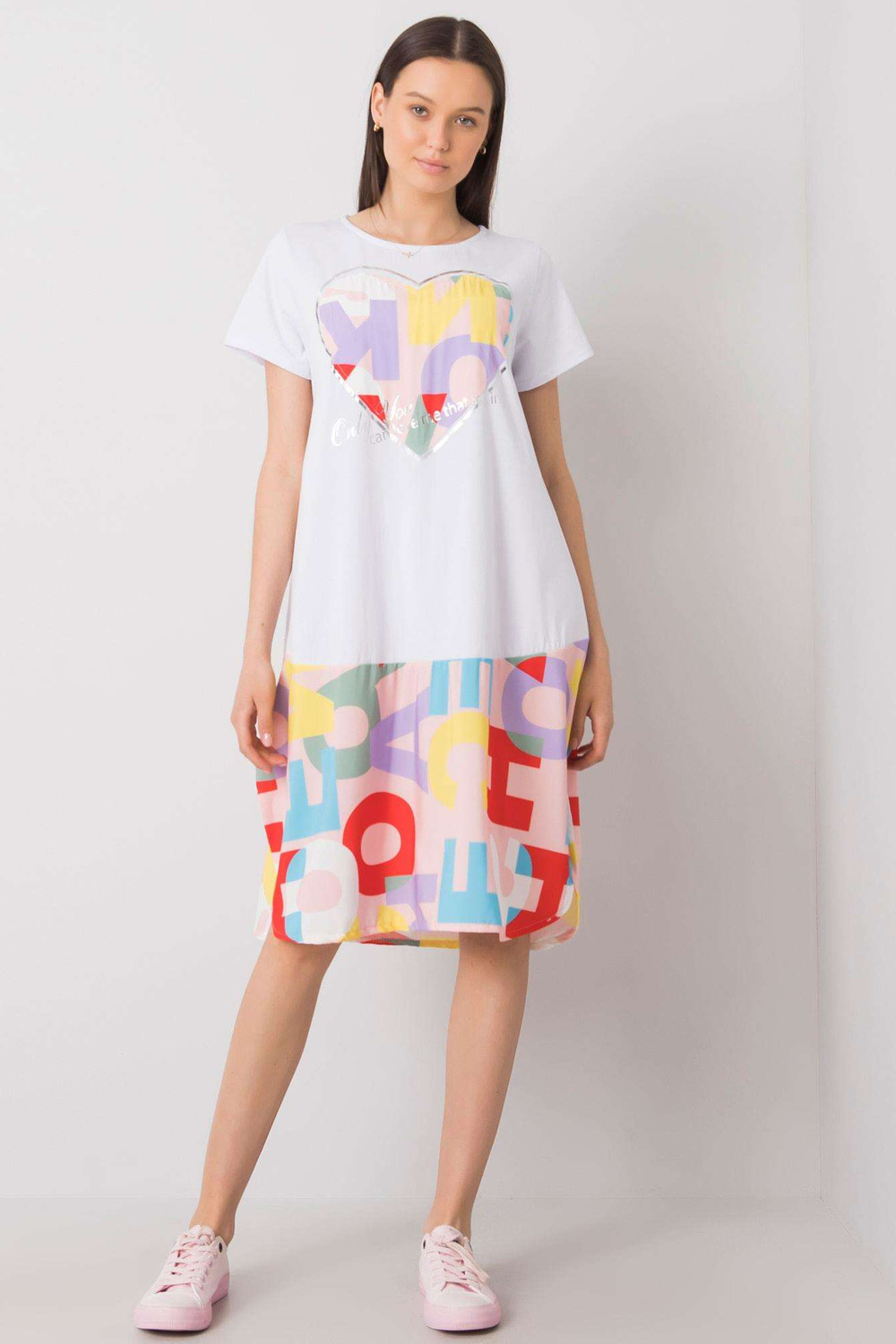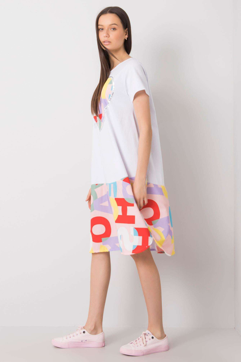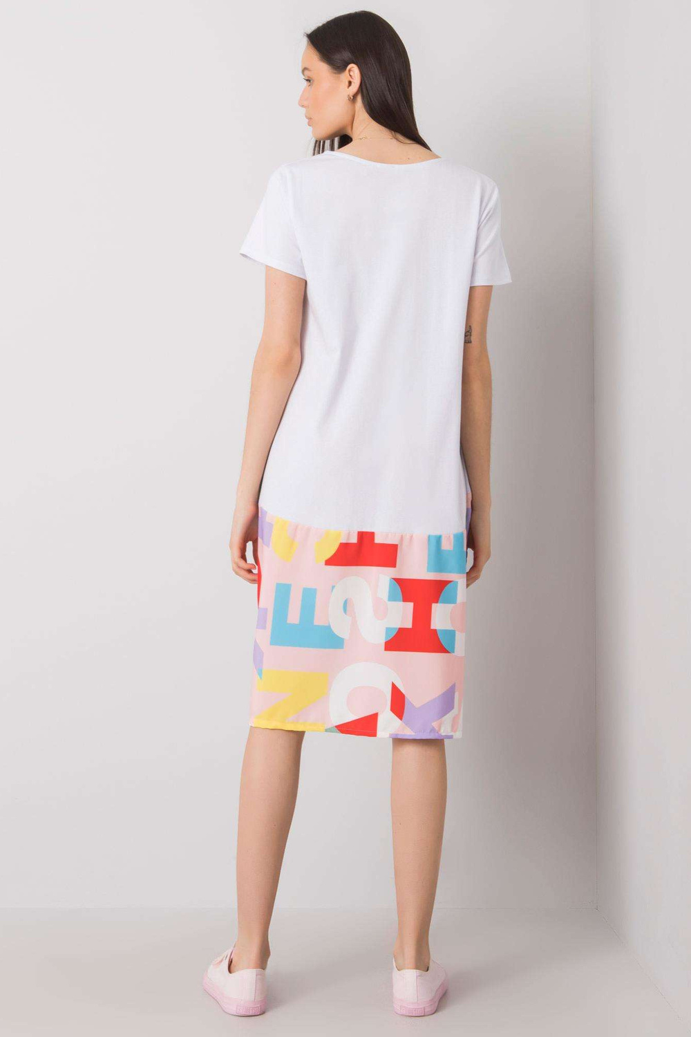 Balta ir šviesiai rožinė suknelė su Guinevere raštais.