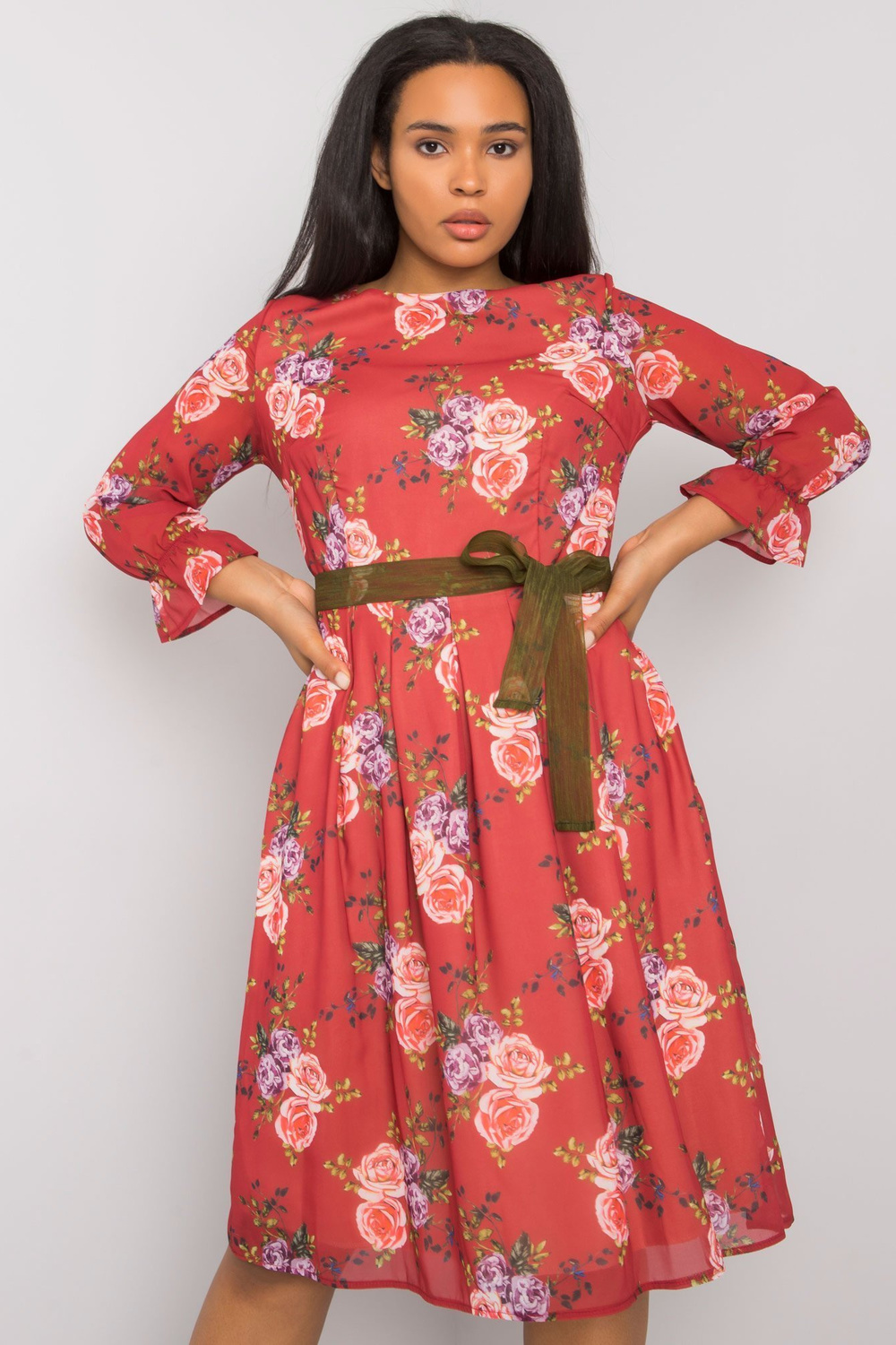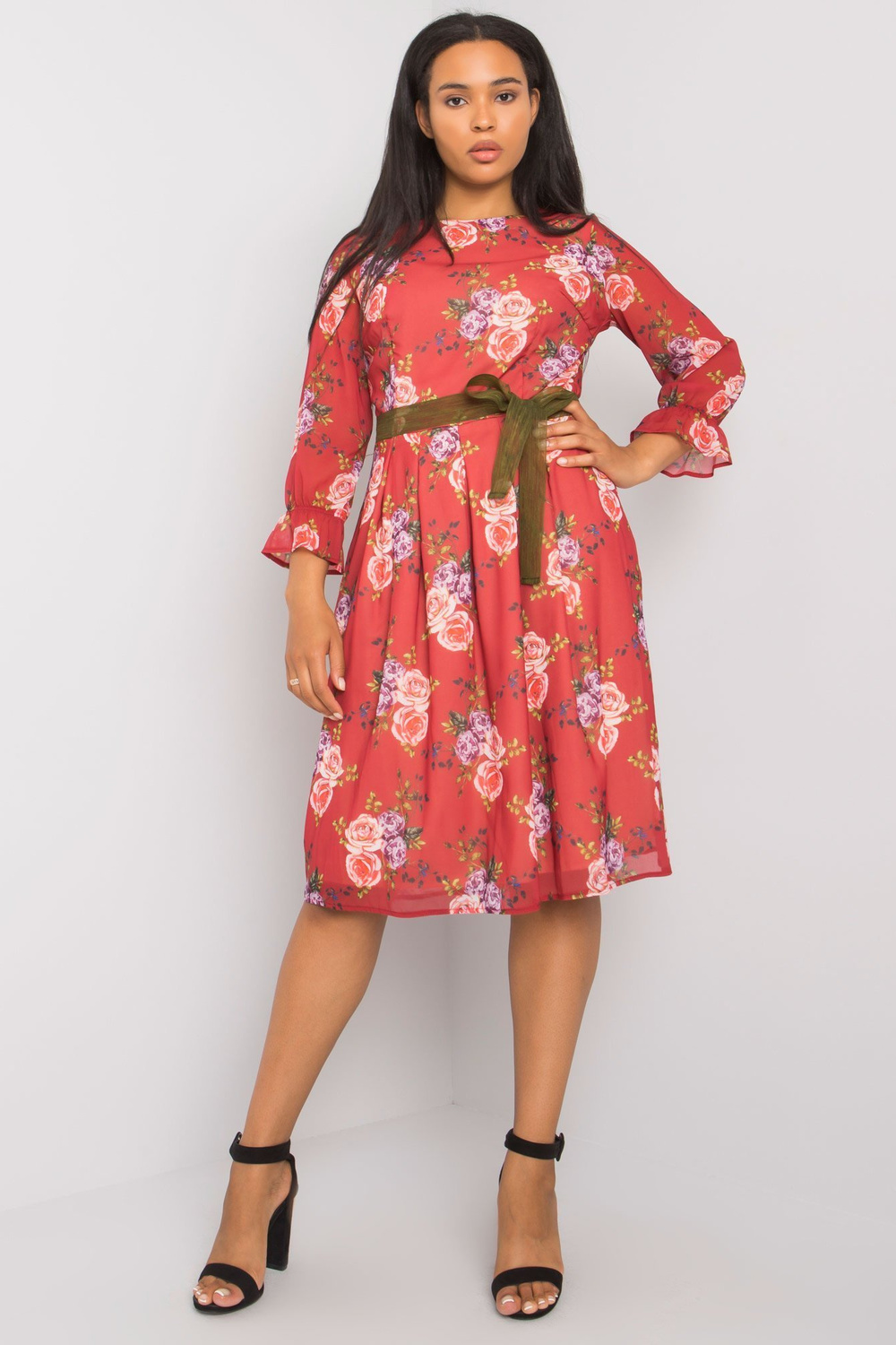 Burgundyplus dydžio suknelė su gėlėmis Bianna . priedai: įsiūtas užtrauktukas, dirželio medžiagasudėtis: 75% poliesteris, 15% viskozė, 10% likra skalbimo būdas: skalbimo mašina 30°C Modelis dėvi 44 dydį. Modelio matmenys: aukštis 175 cm, krūtinė 98