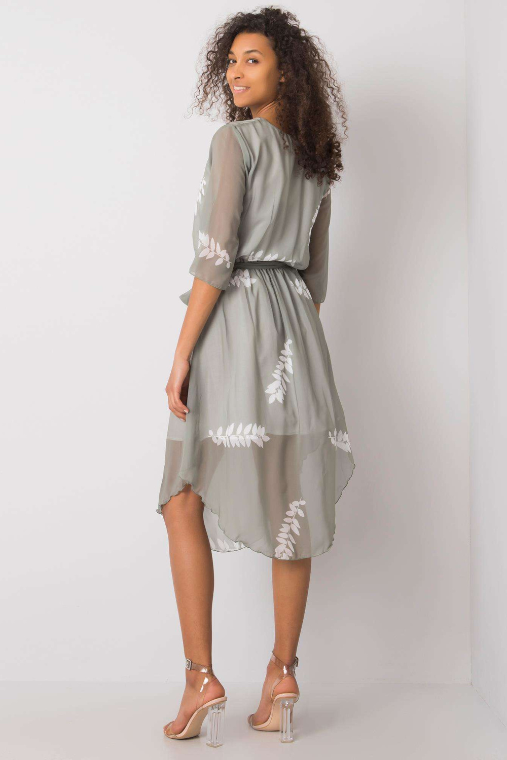 Modelis dėvi 36 dydį. Modelio išmatavimai: ūgis 178 cm, krūtinė 82 cm, juosmuo 61 cm, klubai 88 cm.