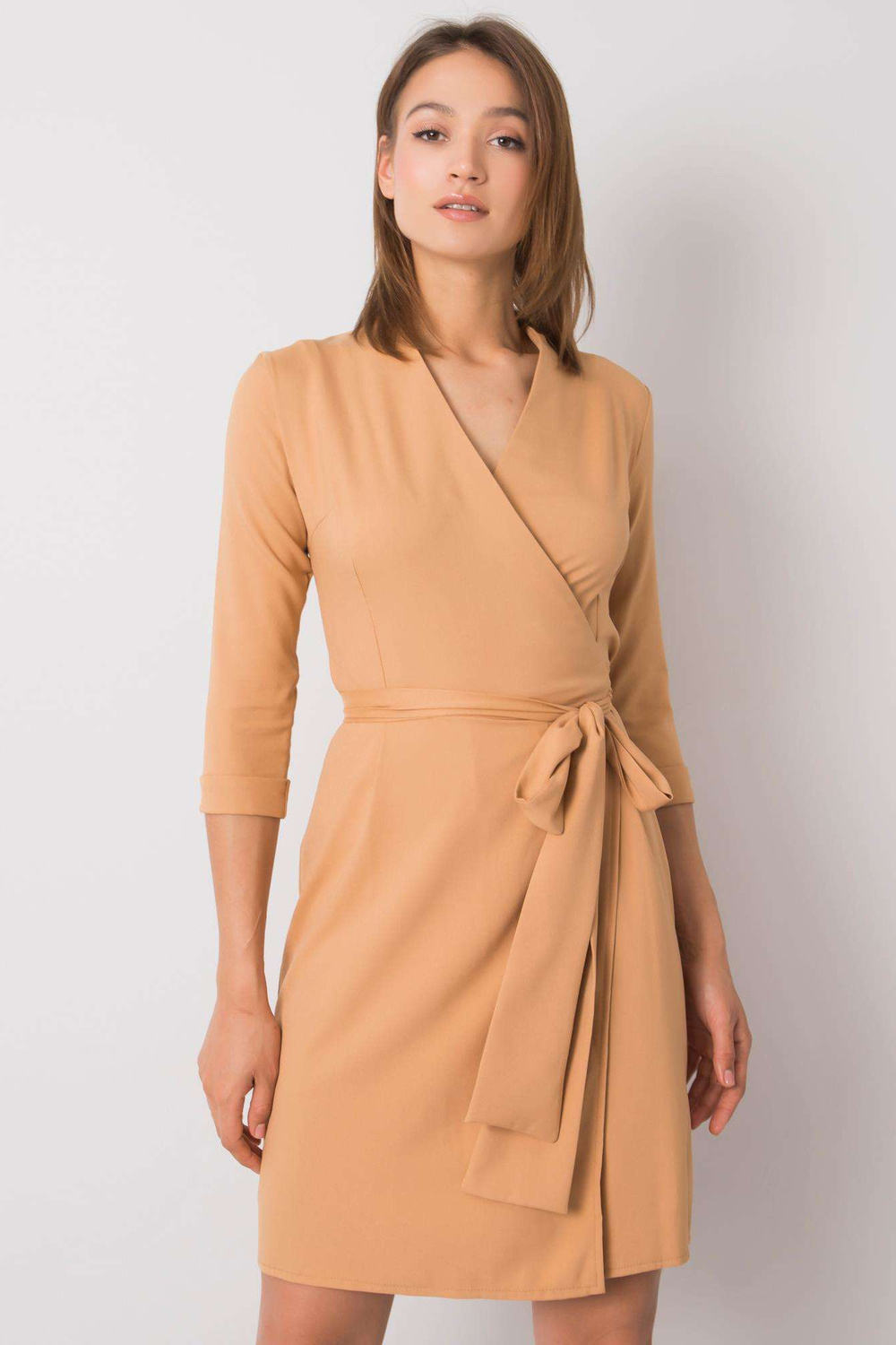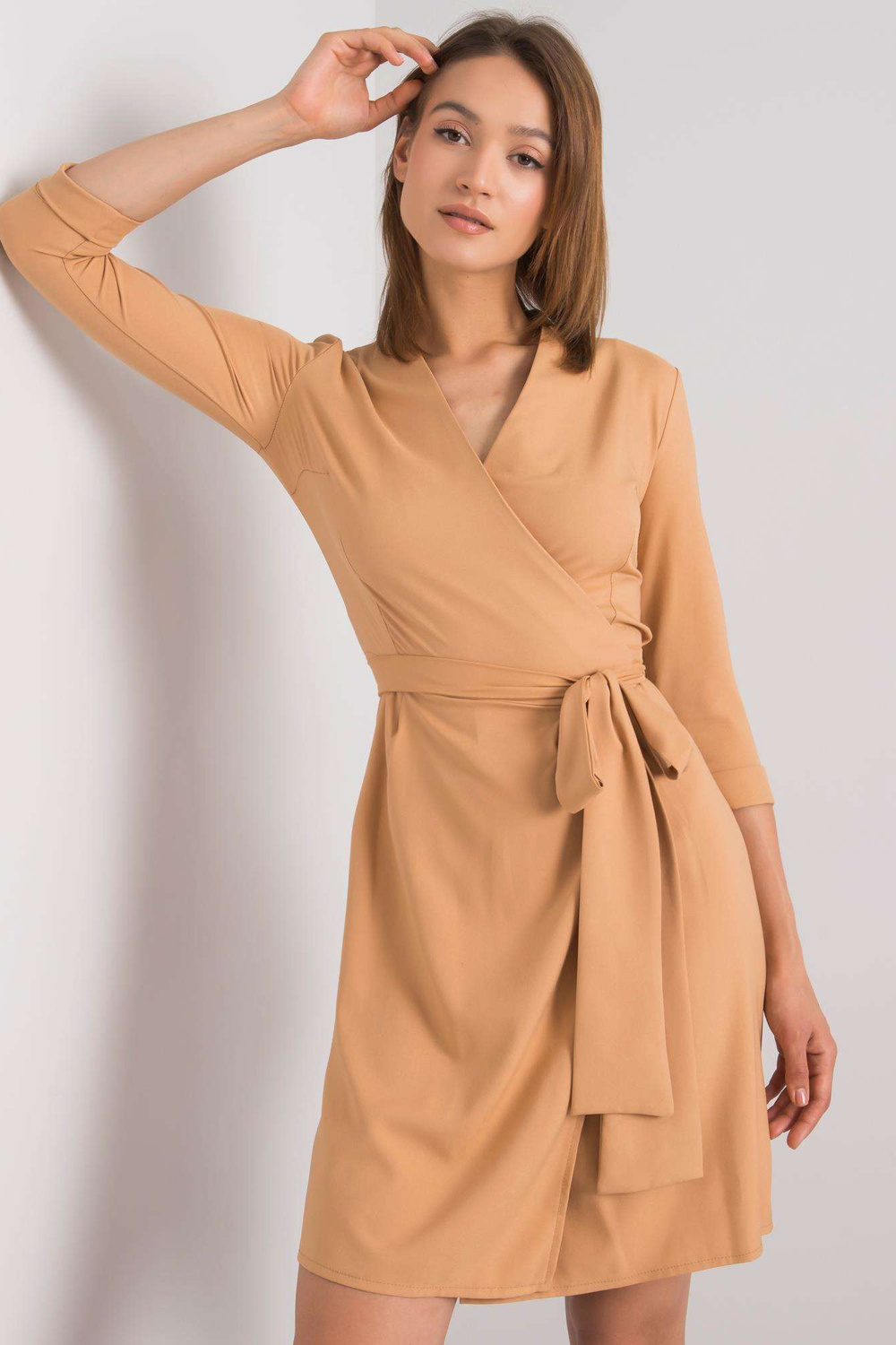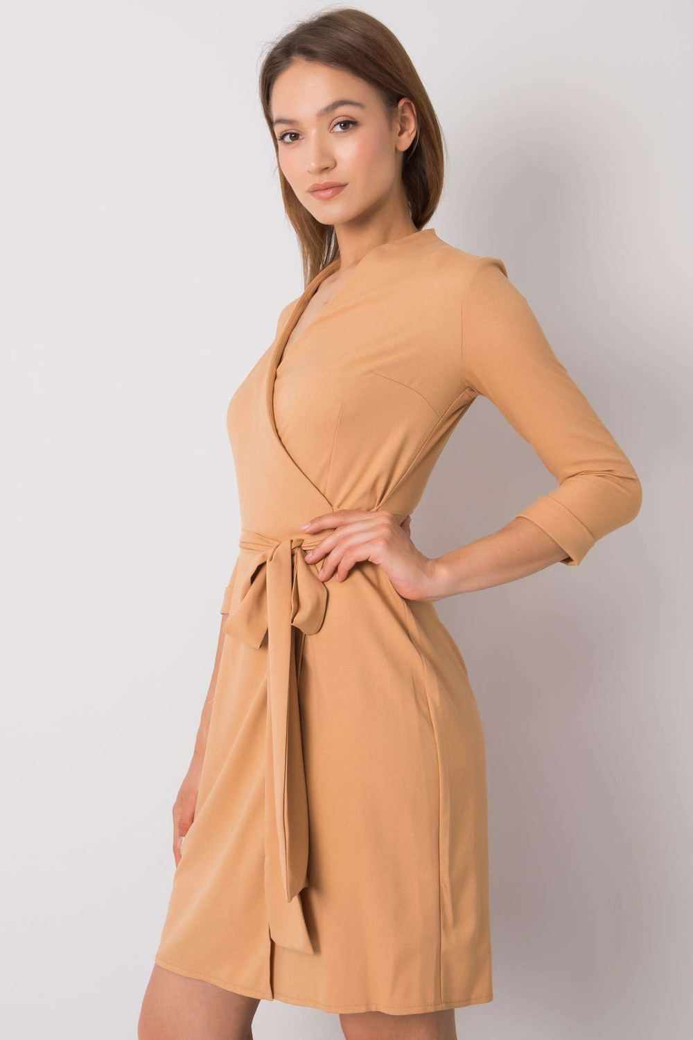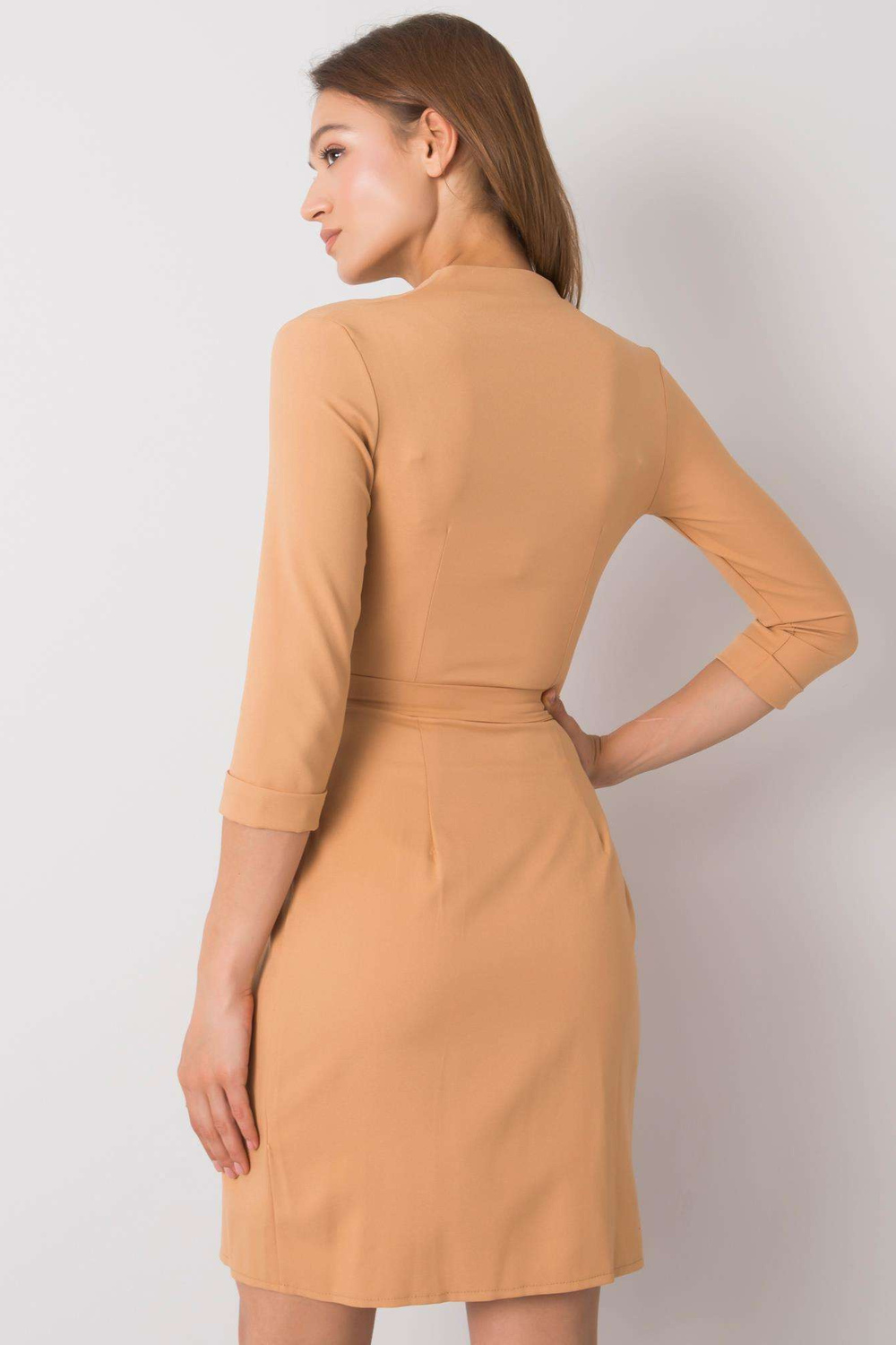 Tamsiai smėlio spalvos suknelė su „Edelie“ įrišimu.
